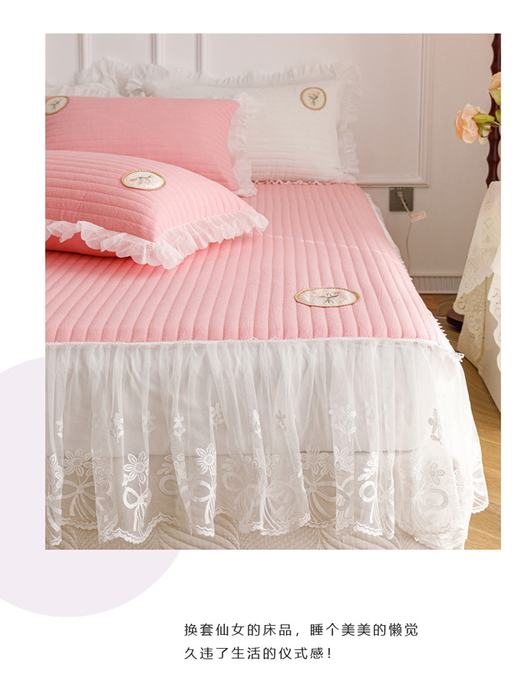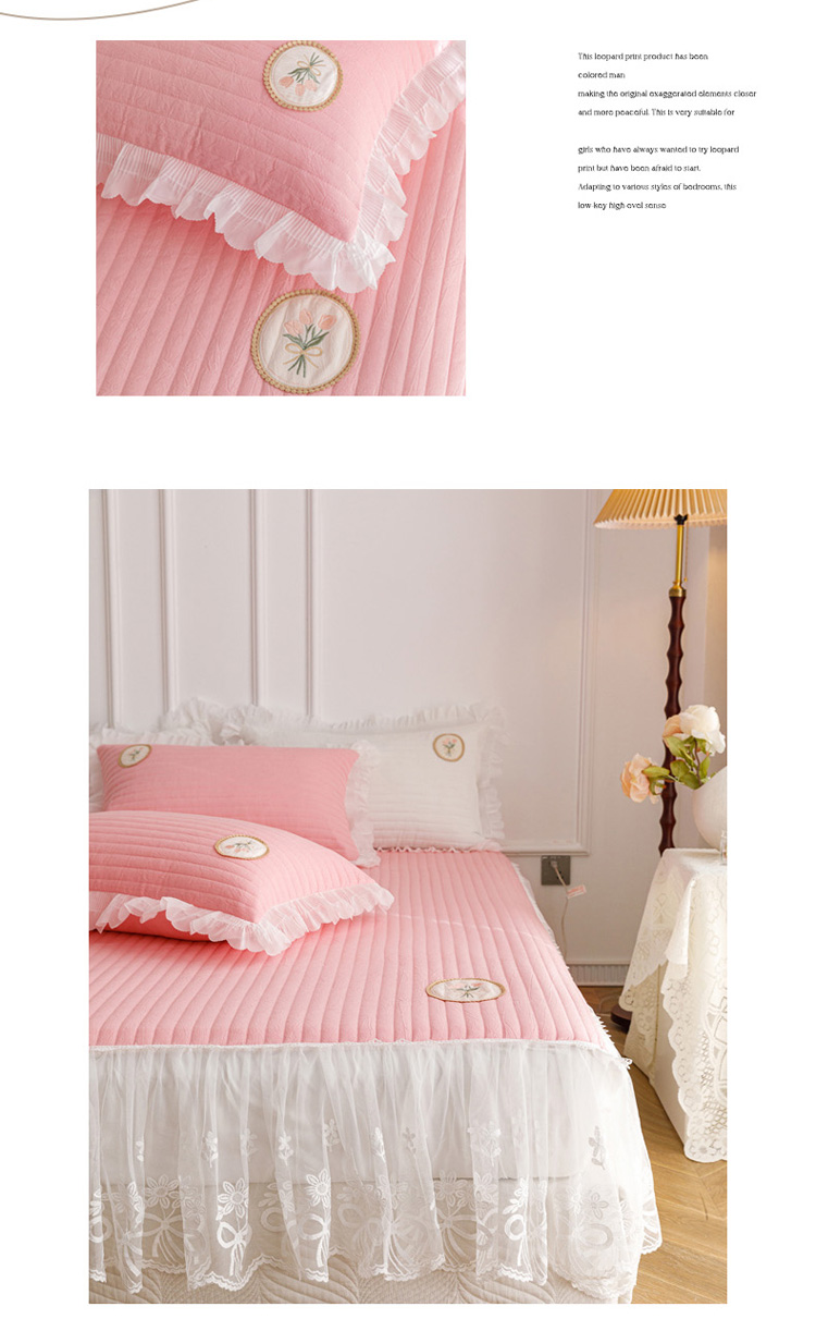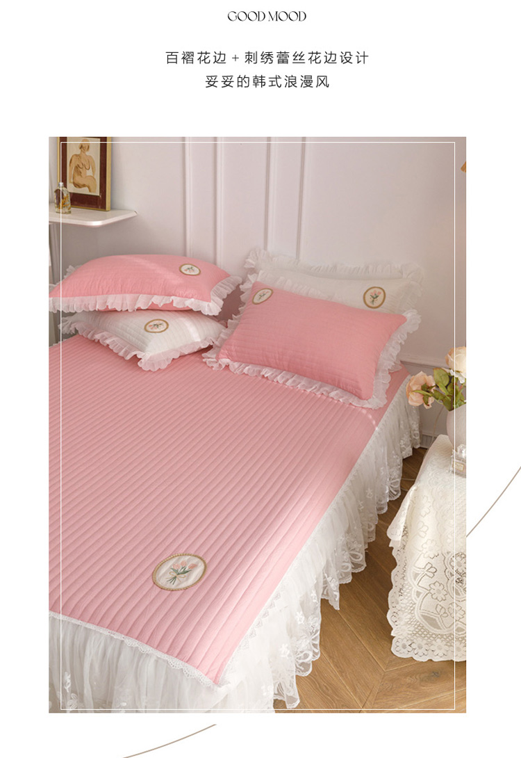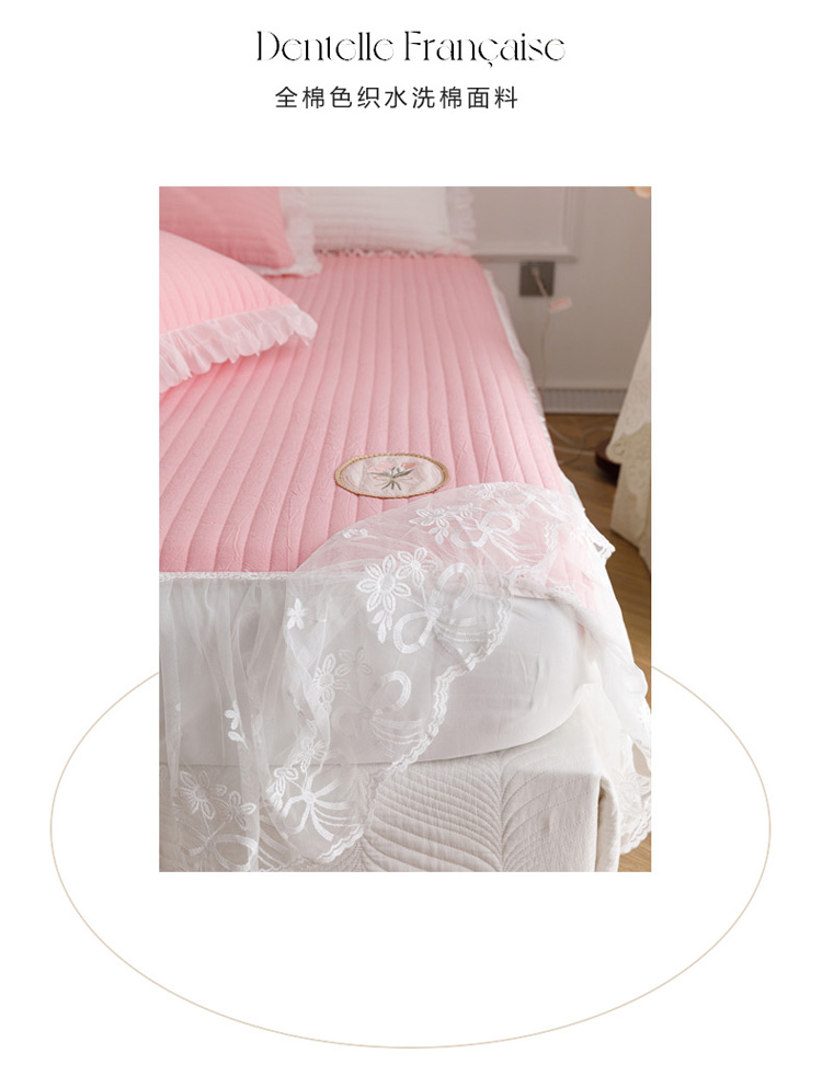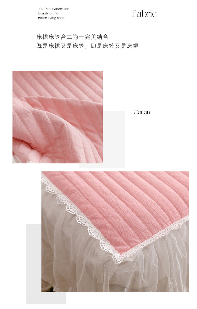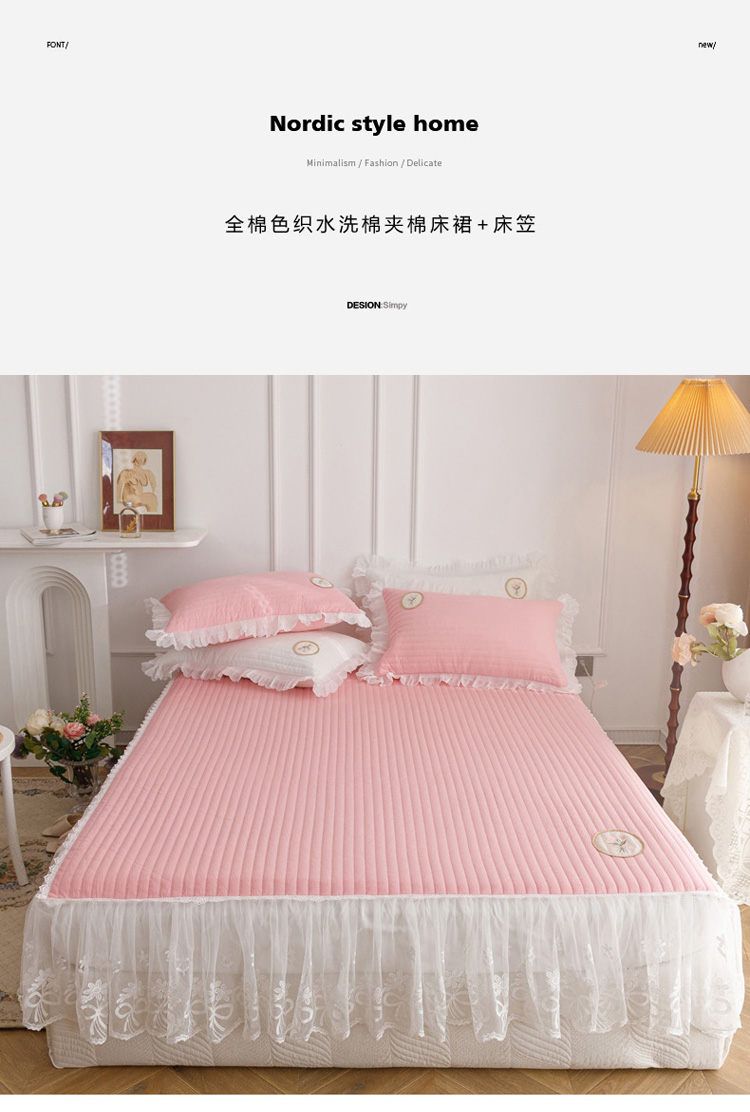 • 91家纺网 家纺一手货源 找家纺 菊上  2022新款色织水洗棉床裙床笠-郁金香 粉