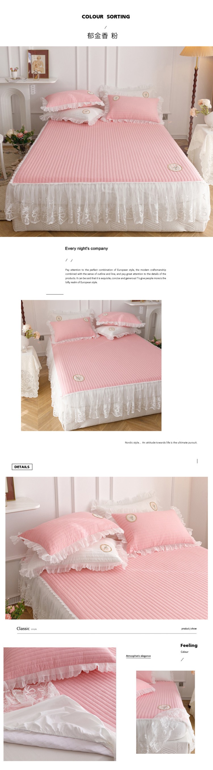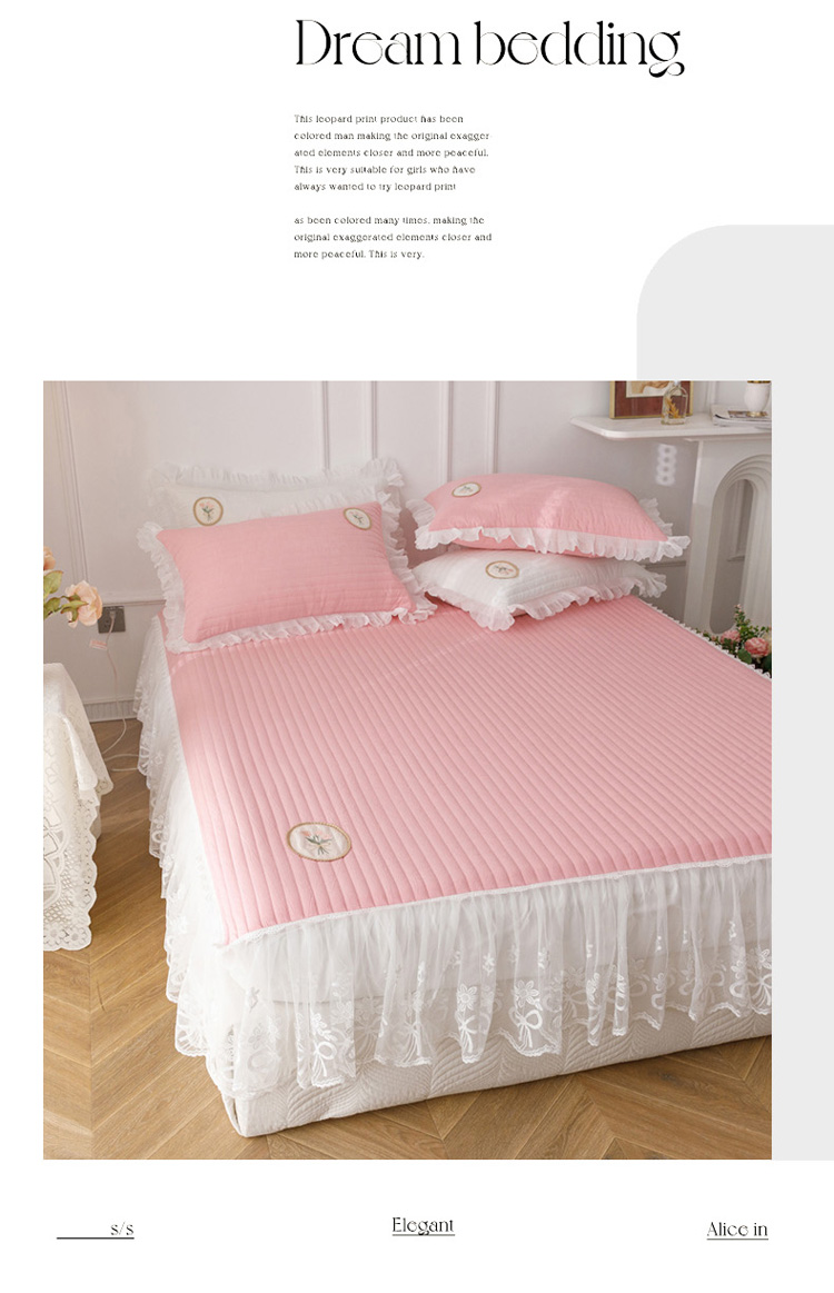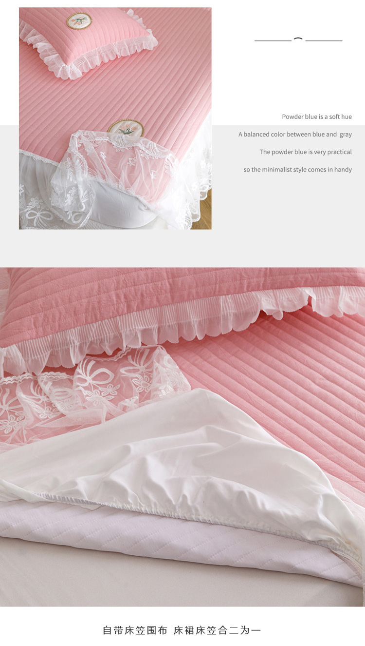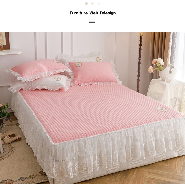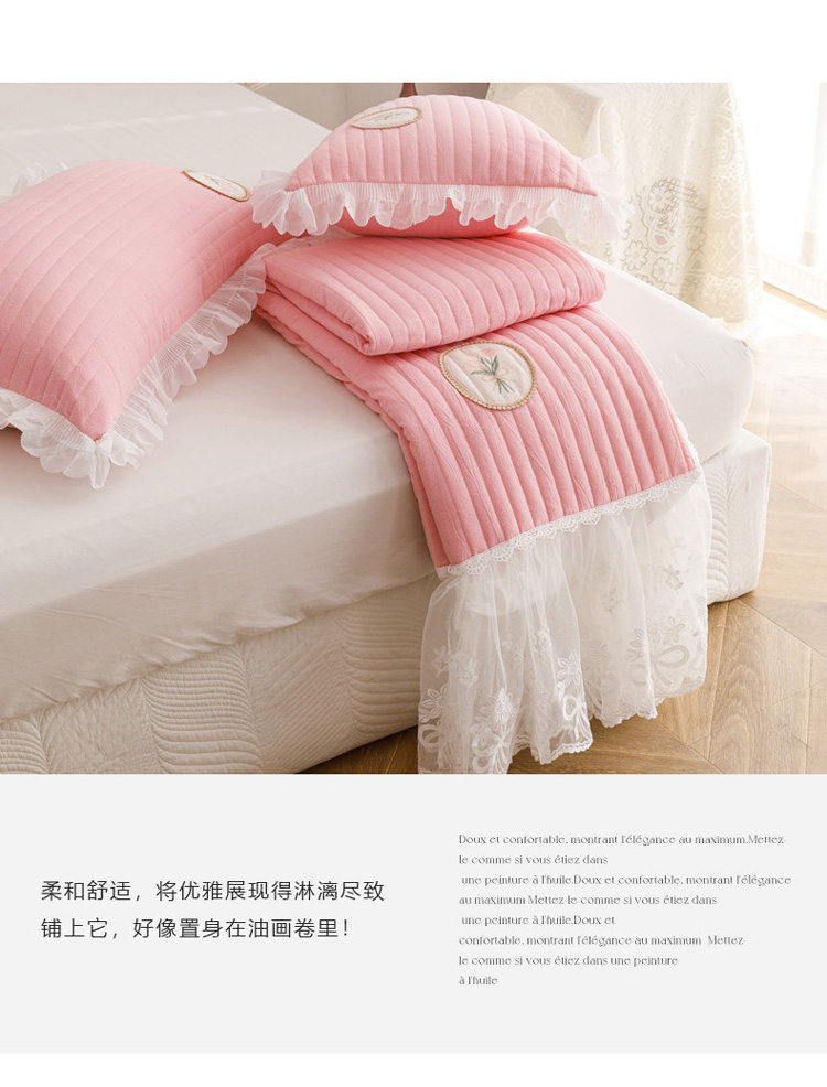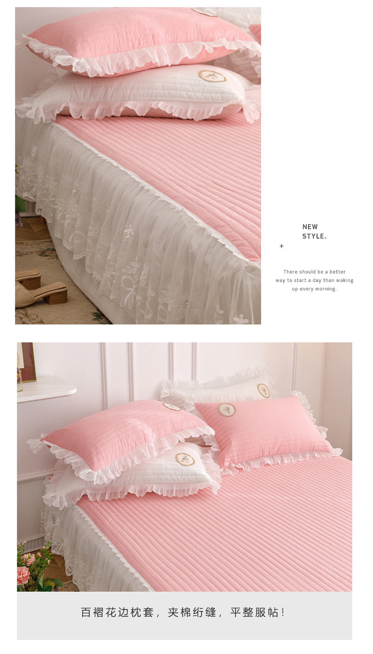 • 91家纺网 家纺一手货源 找家纺 菊上  2022新款色织水洗棉床裙床笠-郁金香 粉