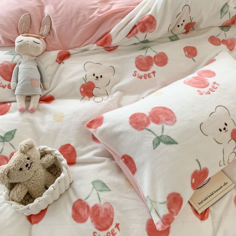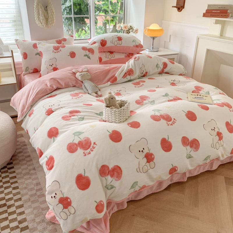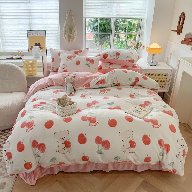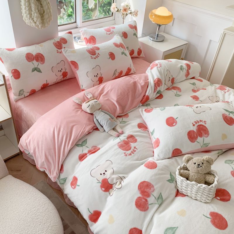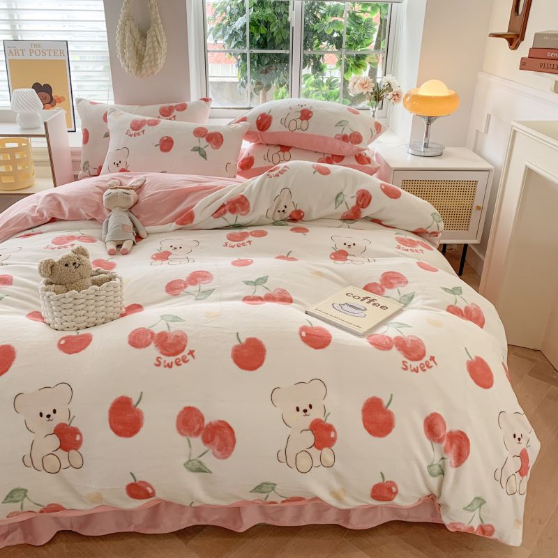 吾欢心 2022新款牛奶绒四件套 樱桃小熊