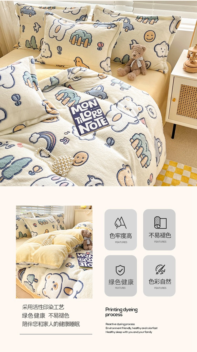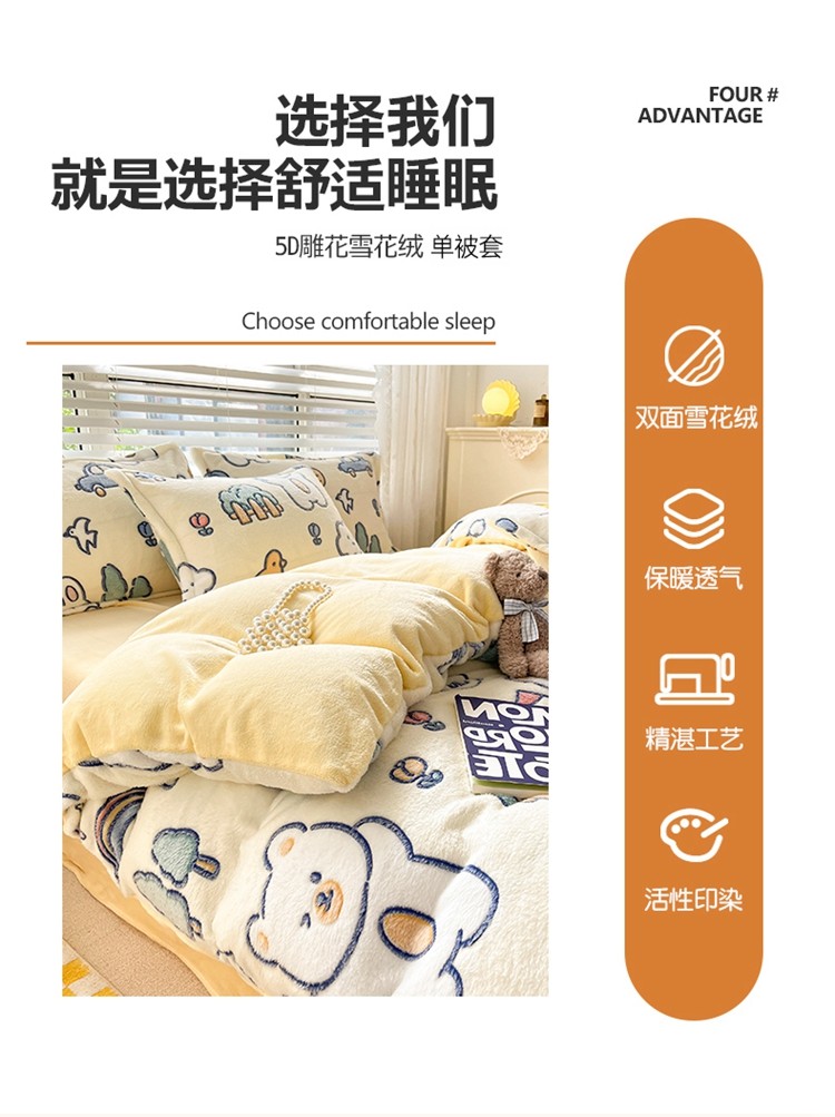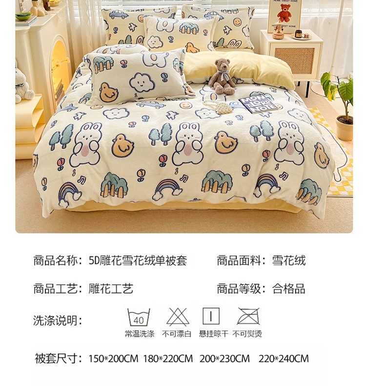 商品名称:2022新款5D牛奶绒雪花绒单被套 动物巴士