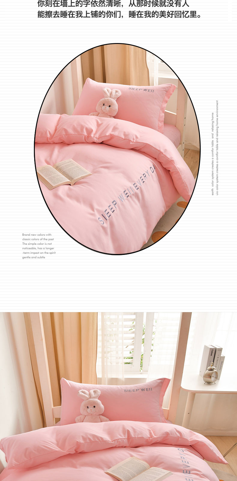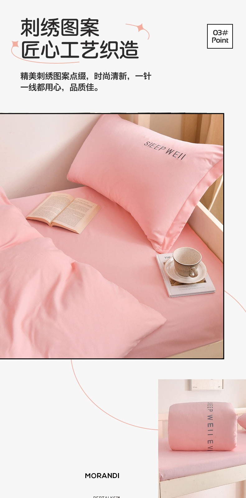 商品名称:啊雅家居纯色水洗磨毛亲肤绣花床单款床笠款学生三套件 奶粉