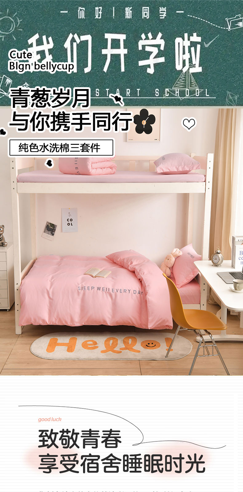 0.9米床笠款三件套