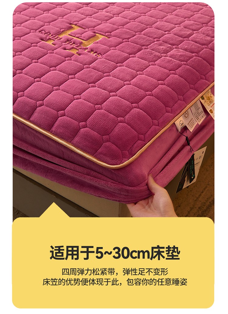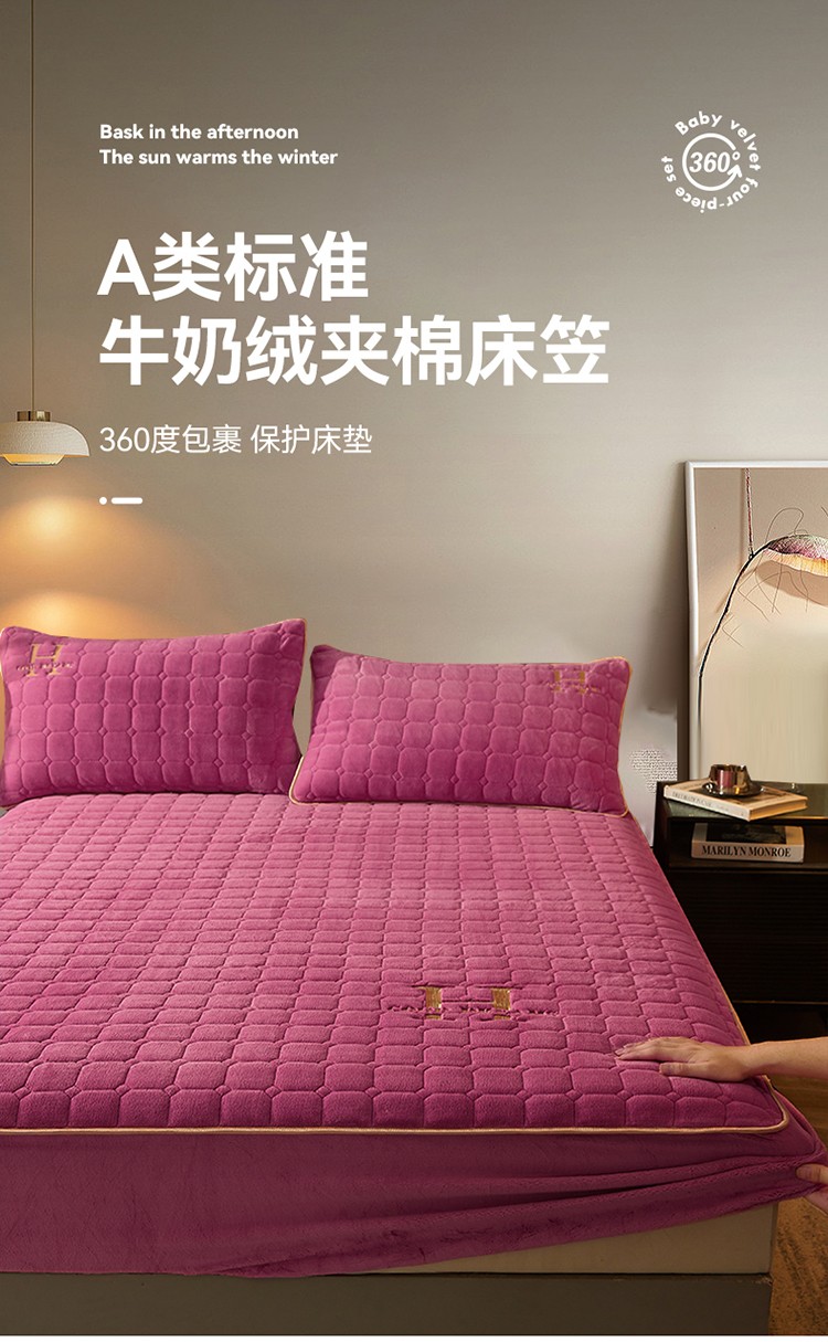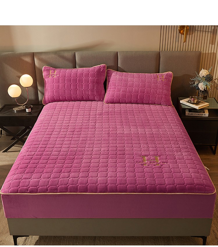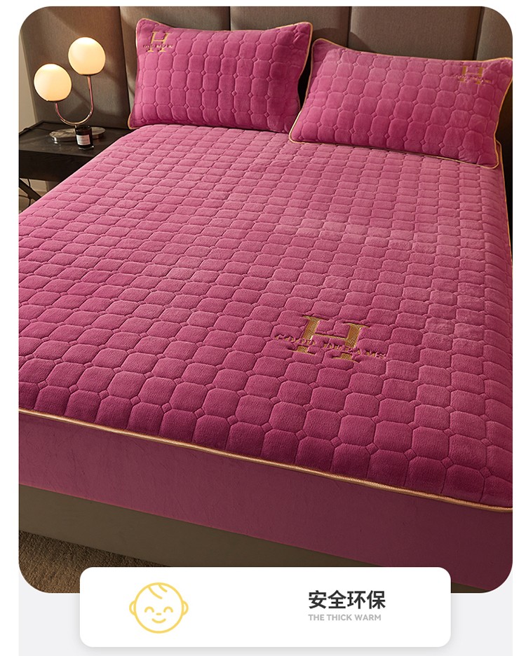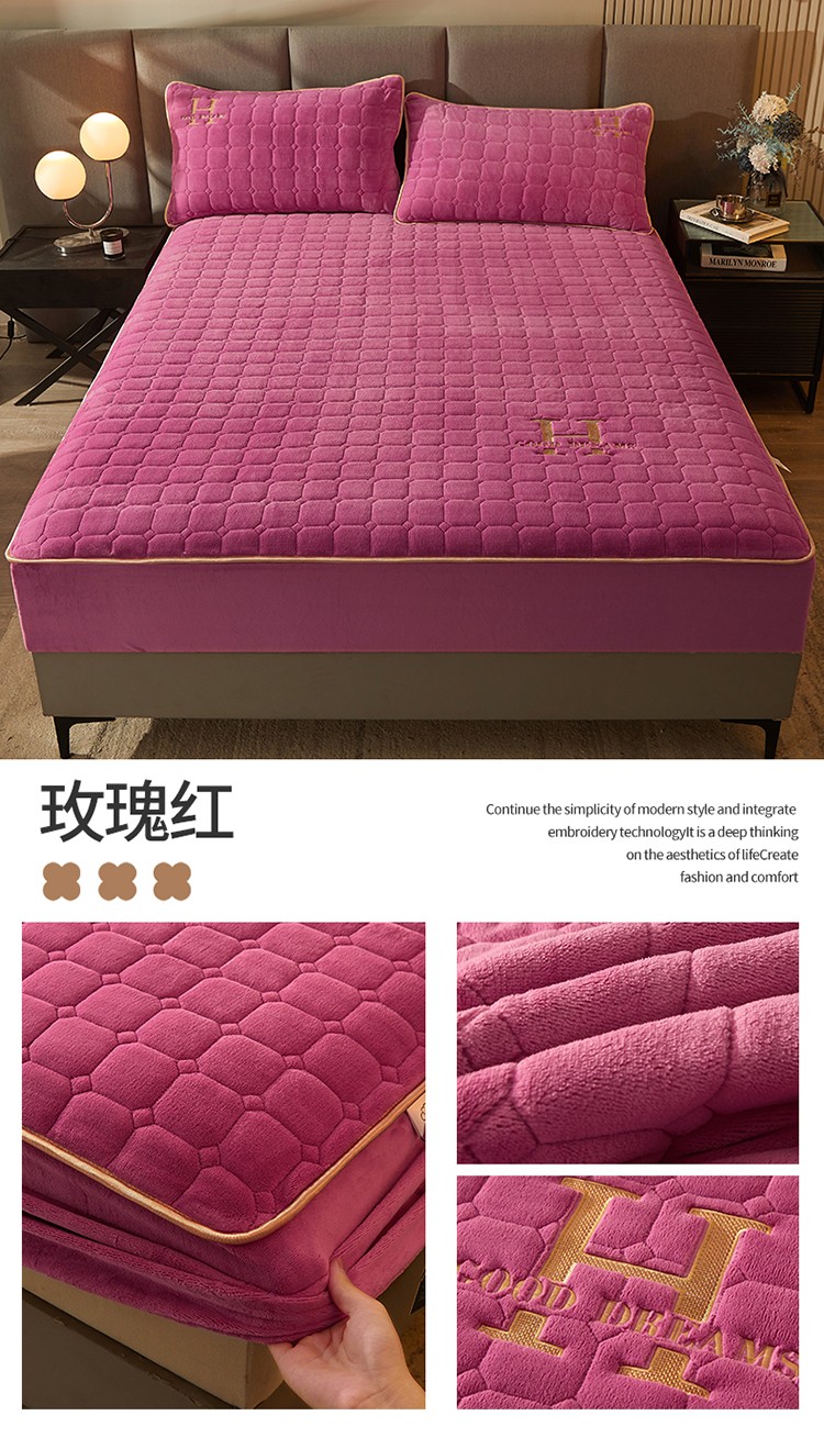 商品名称:恒爱2022秋冬新款A类牛奶绒刺绣夹棉单床笠--H系列玫瑰红