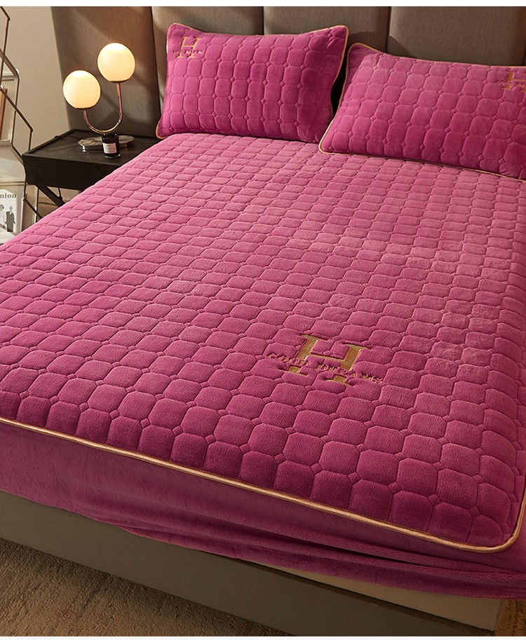 恒爱2022秋冬新款A类牛奶绒刺绣夹棉单床笠--H系列玫瑰红