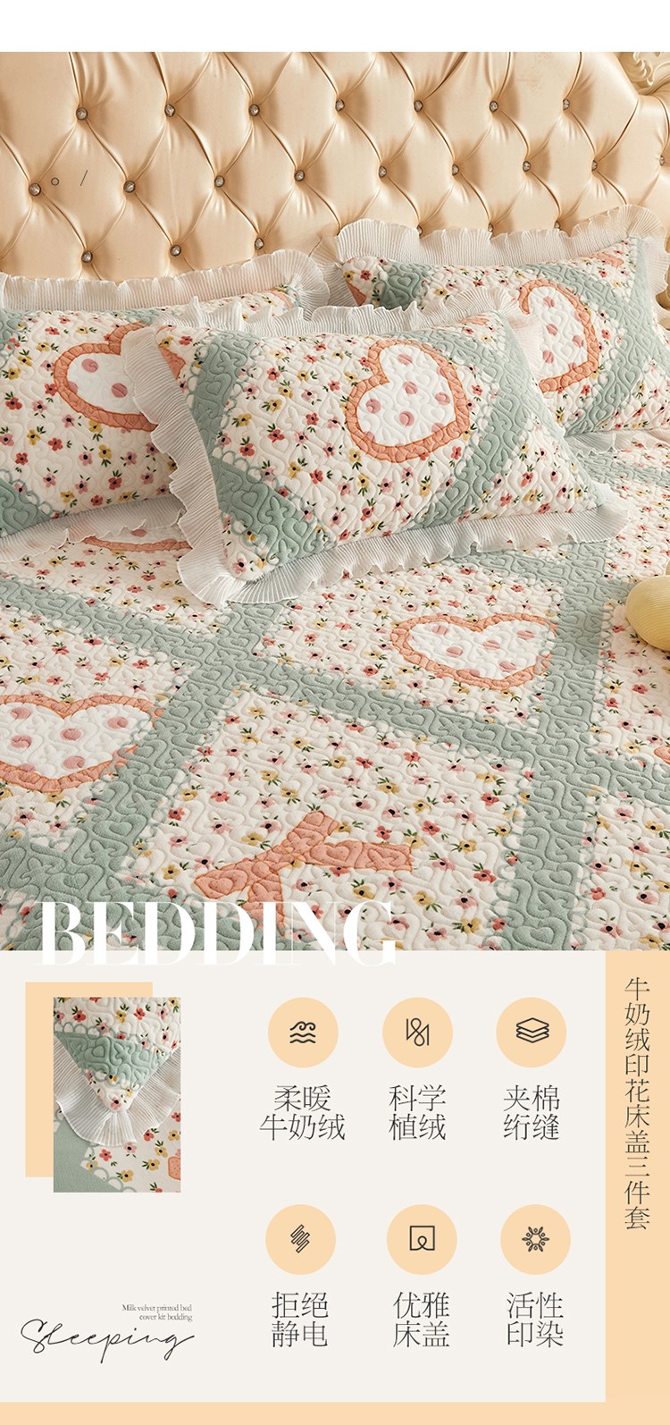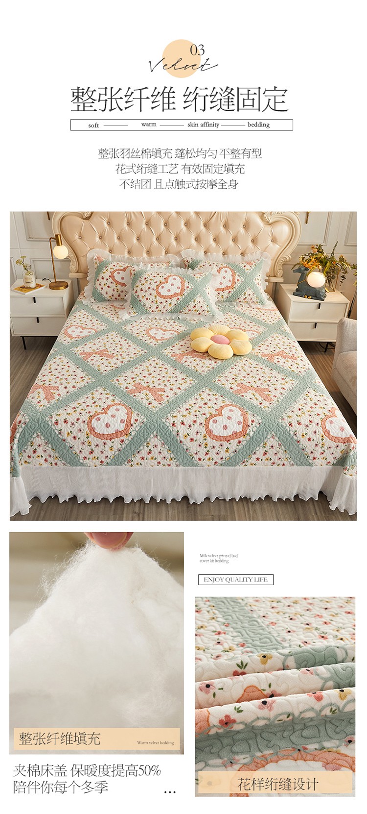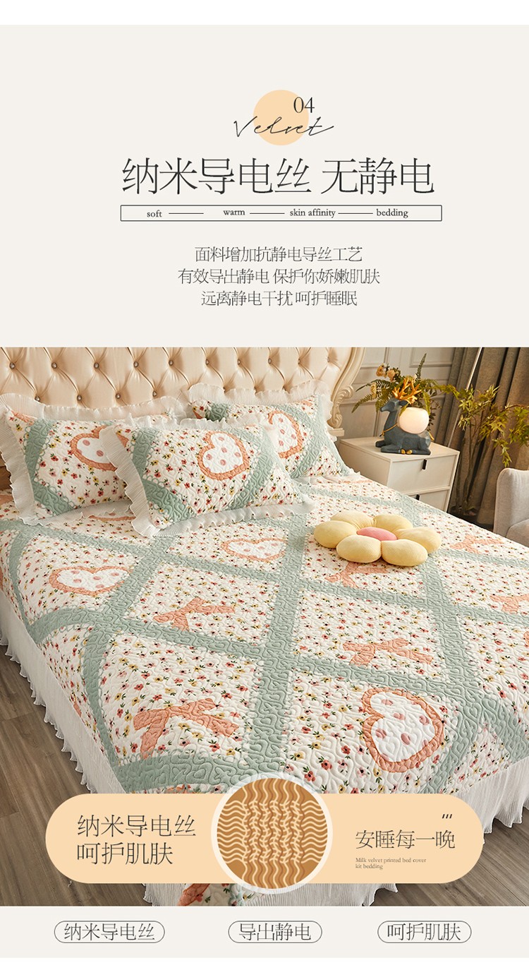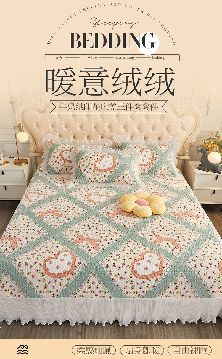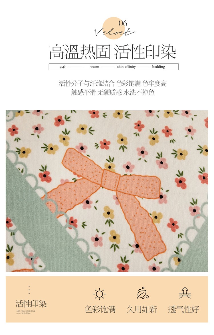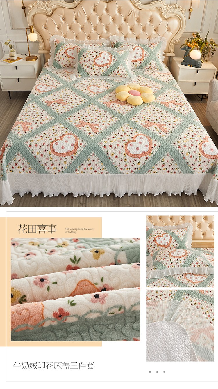 当前位置: 91家纺网 > 商品网购 > 床品套件 > 四件套 > 全棉普通四件套 > 宜凡 2022新款牛奶绒小清新床盖三四件套 花田喜事