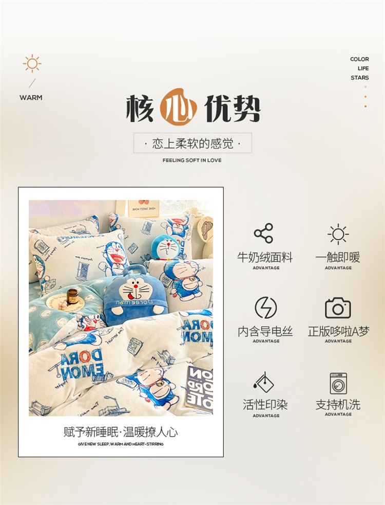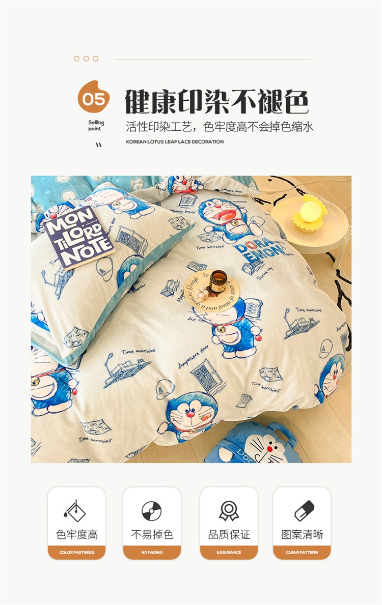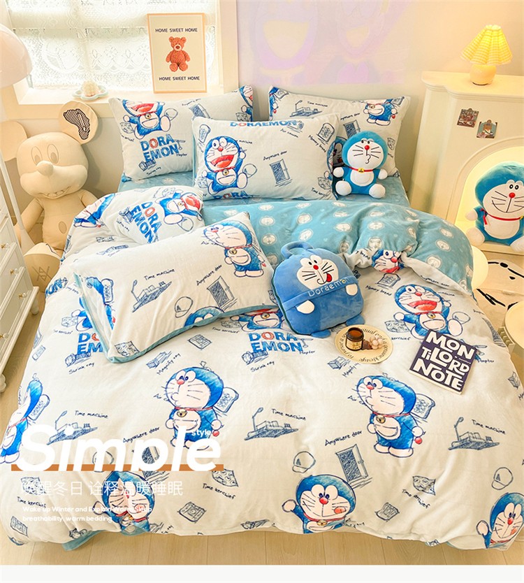 当前位置: 91家纺网 > 商品网购 > 床品套件 > 四件套 > 牛奶绒四件套 > 桃子家居 2022新款正版授权卡通加厚牛奶绒系列四件套 绒哆啦A梦-漫画叮当