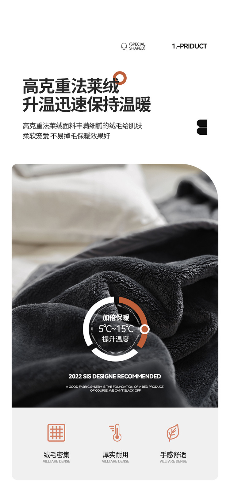 商品名称:寐眠 2022新款法莱绒毛毯 深灰