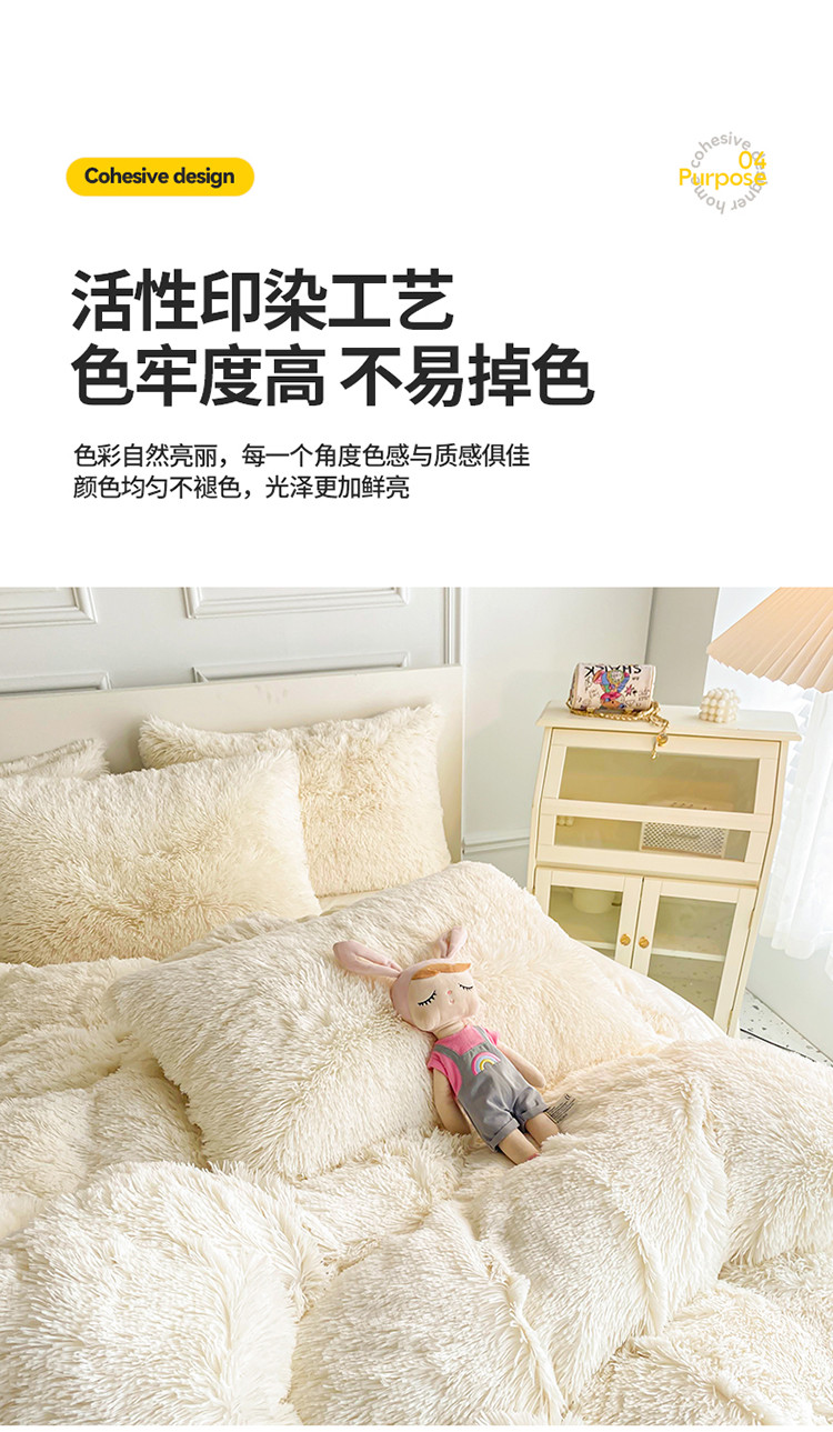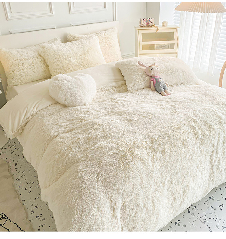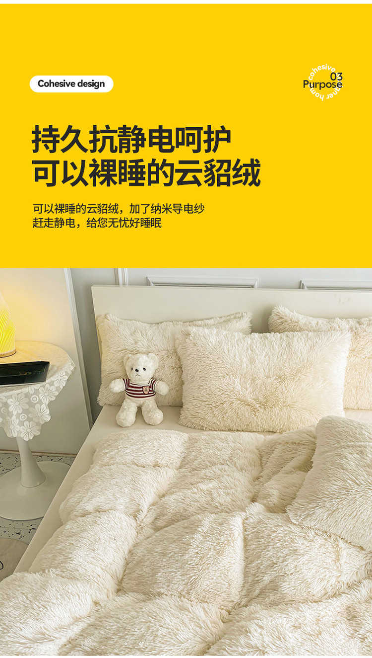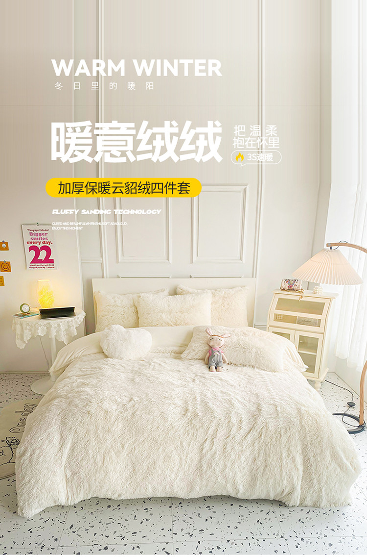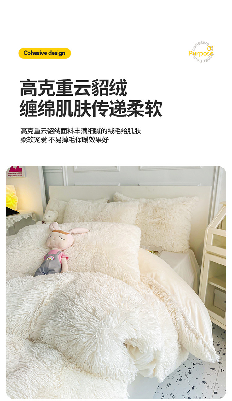 邦妮家纺 2024新款云貂绒纯色四件套 奶油白
