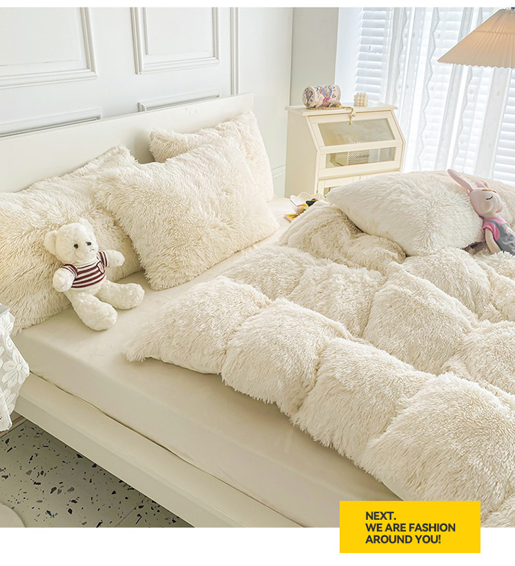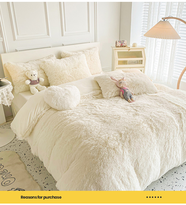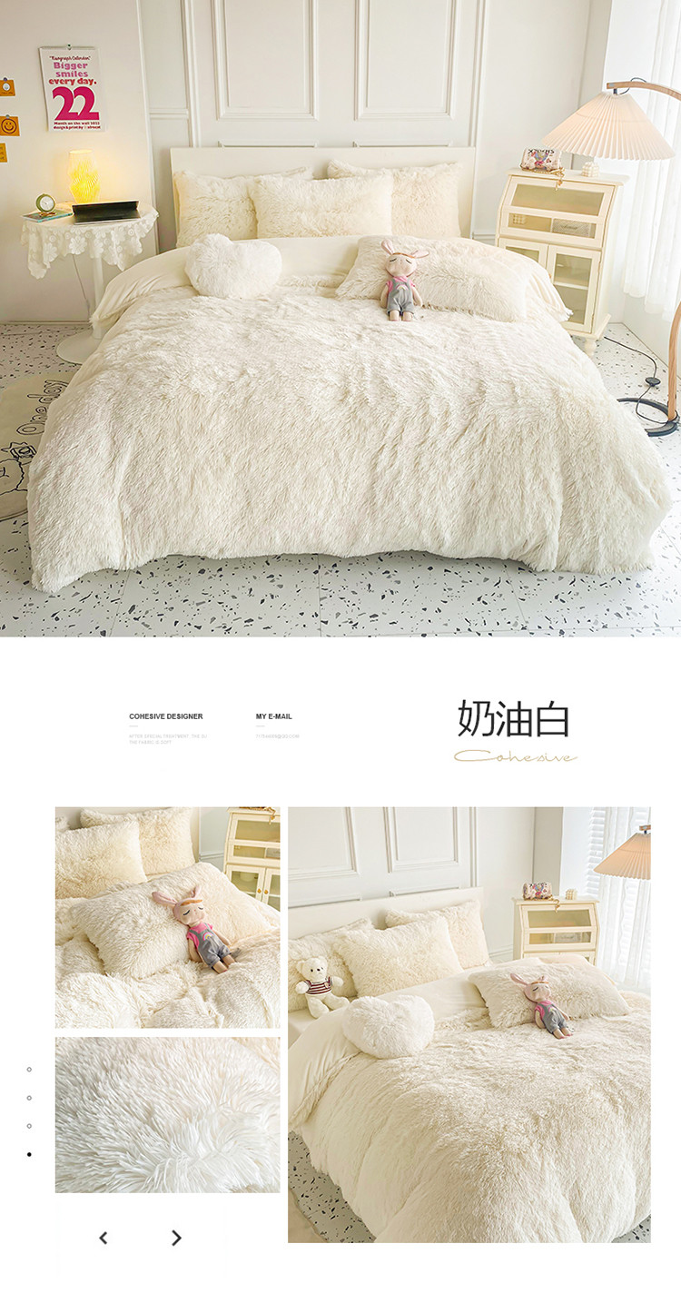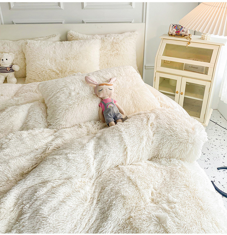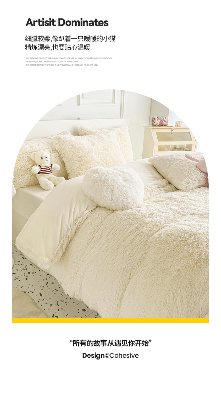 邦妮家纺 2024新款云貂绒纯色四件套 奶油白