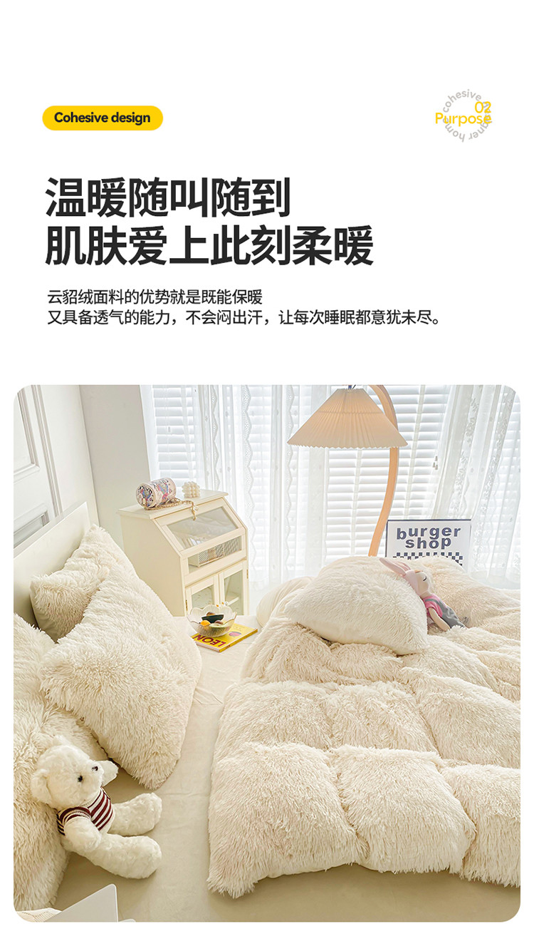 商品名称:邦妮家纺 2024新款云貂绒纯色四件套 奶油白