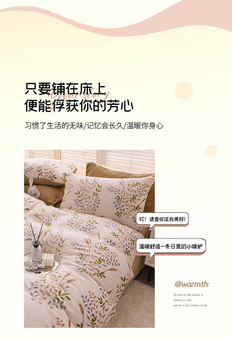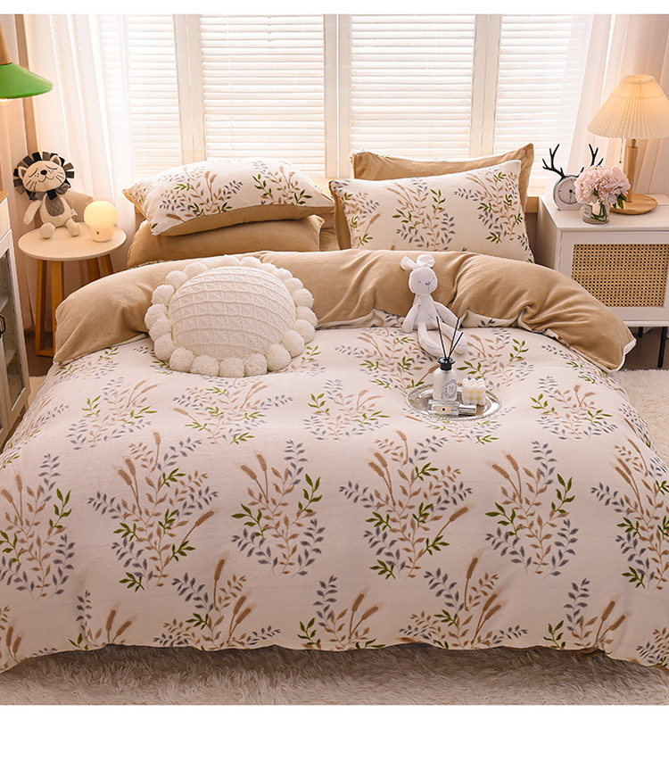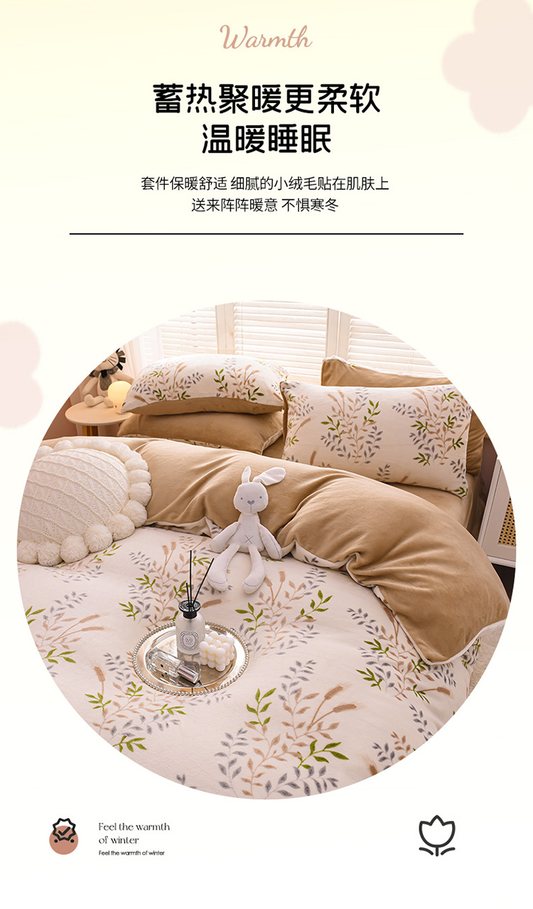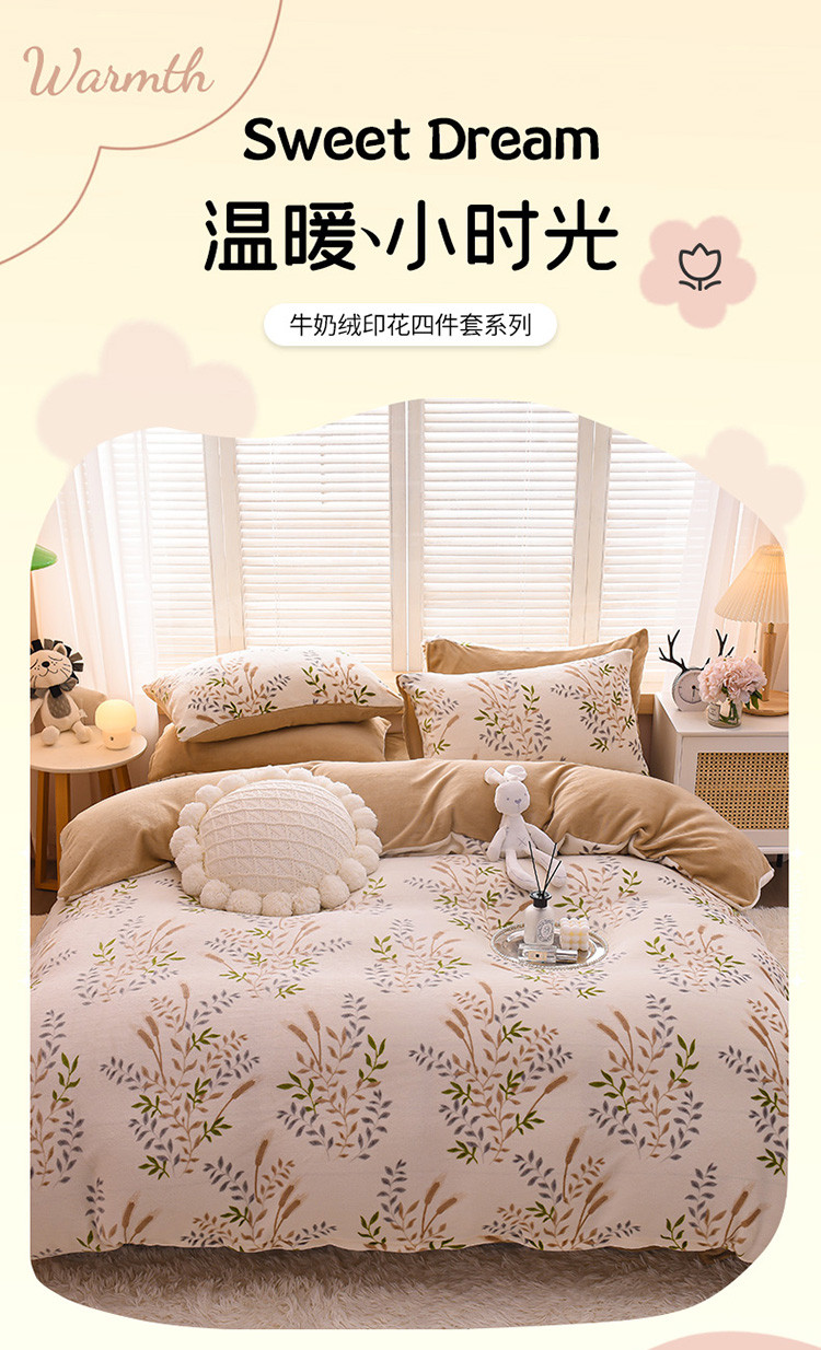 商品名称:芃成 2022新款加厚双面牛奶绒印花床品系列-四件套 春意盎然