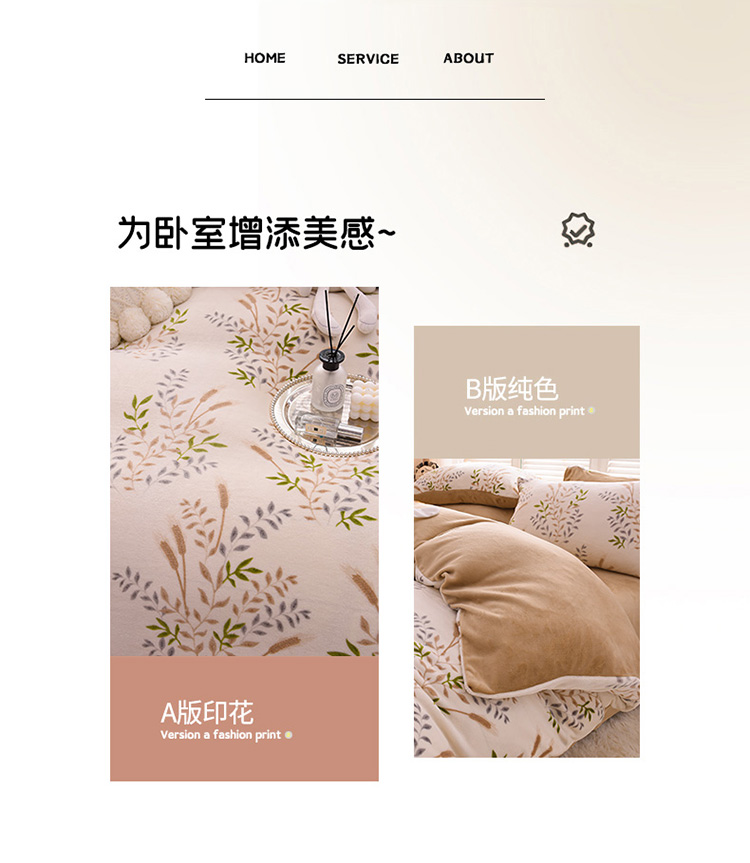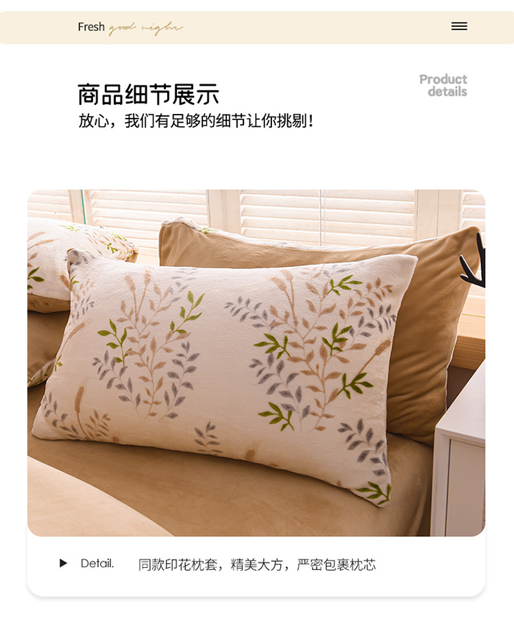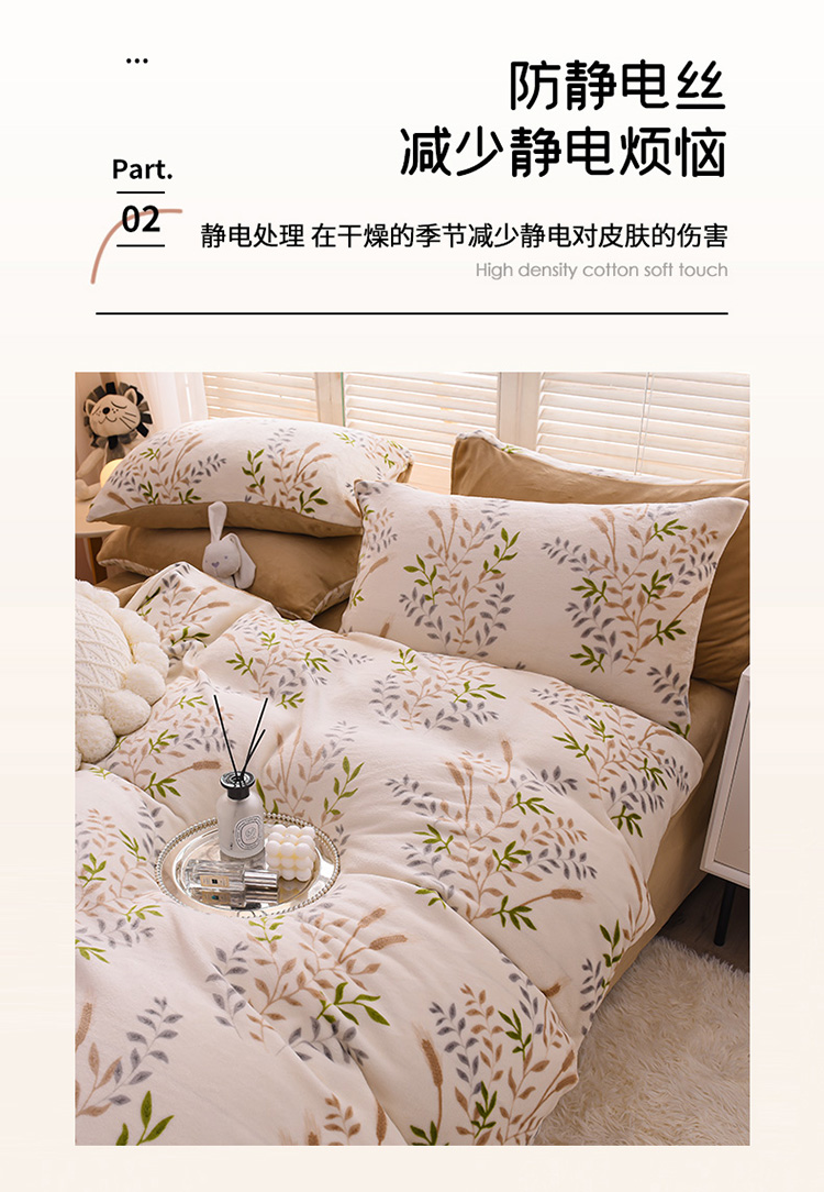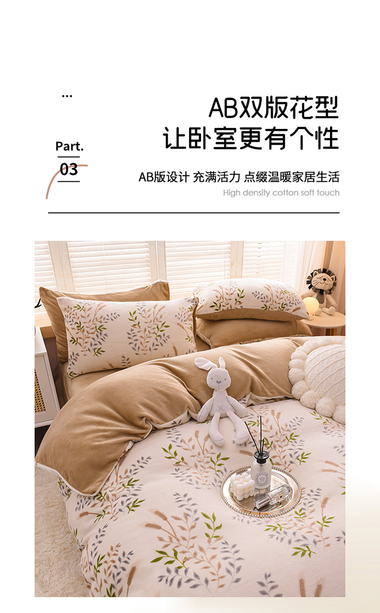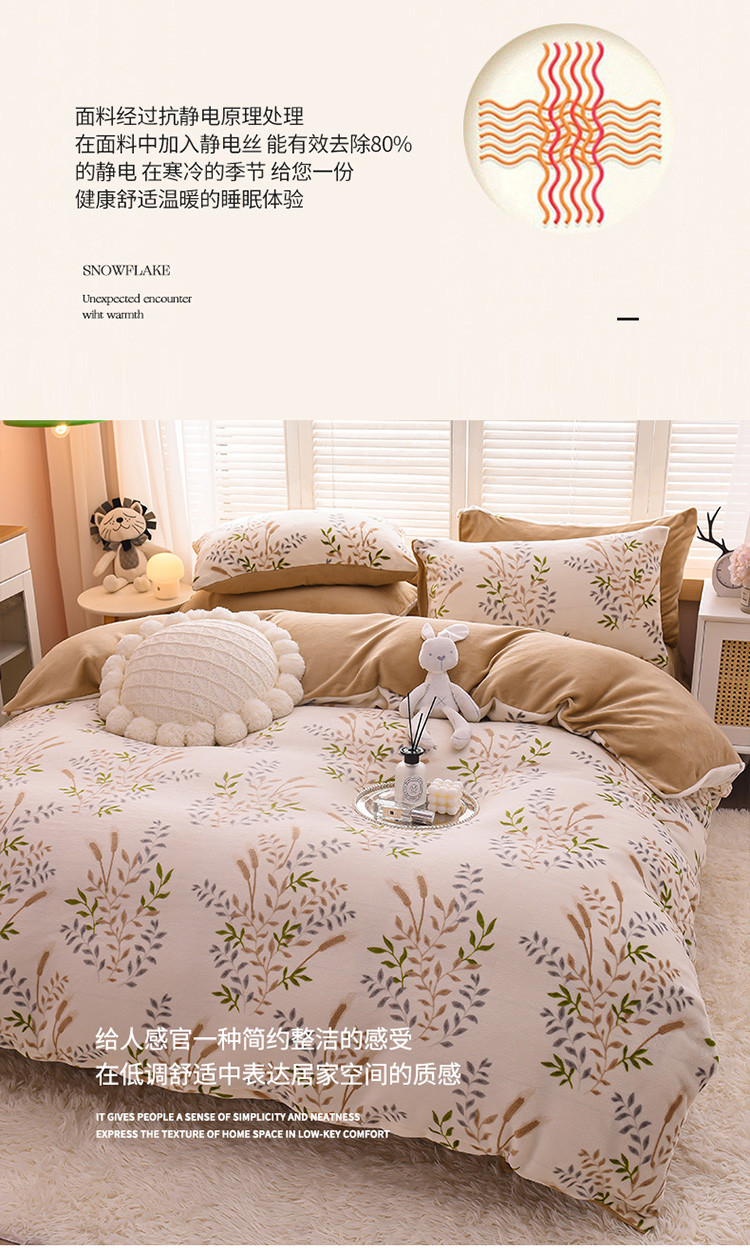 商品名称:芃成 2022新款加厚双面牛奶绒印花床品系列-四件套 春意盎然