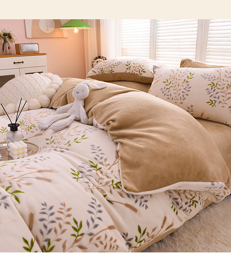 芃成 2022新款加厚双面牛奶绒印花床品系列-四件套 春意盎然