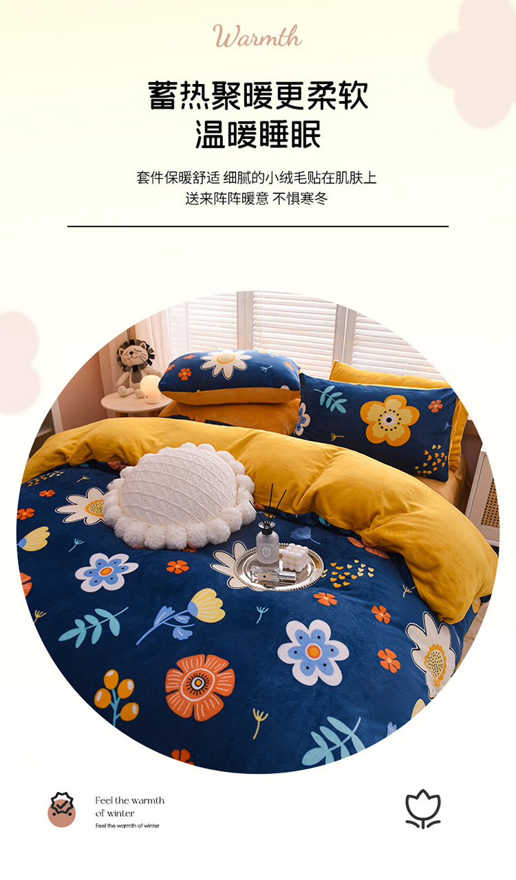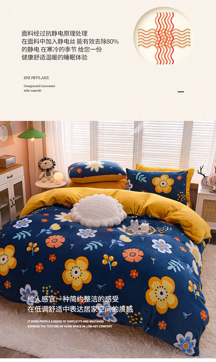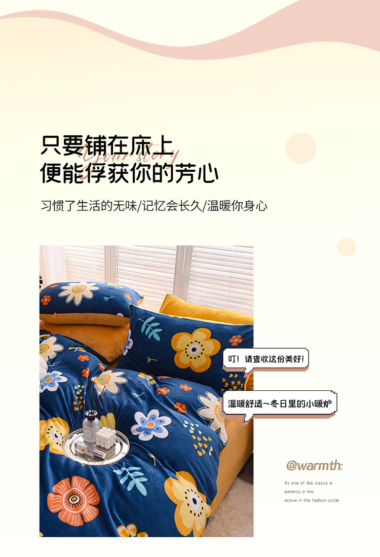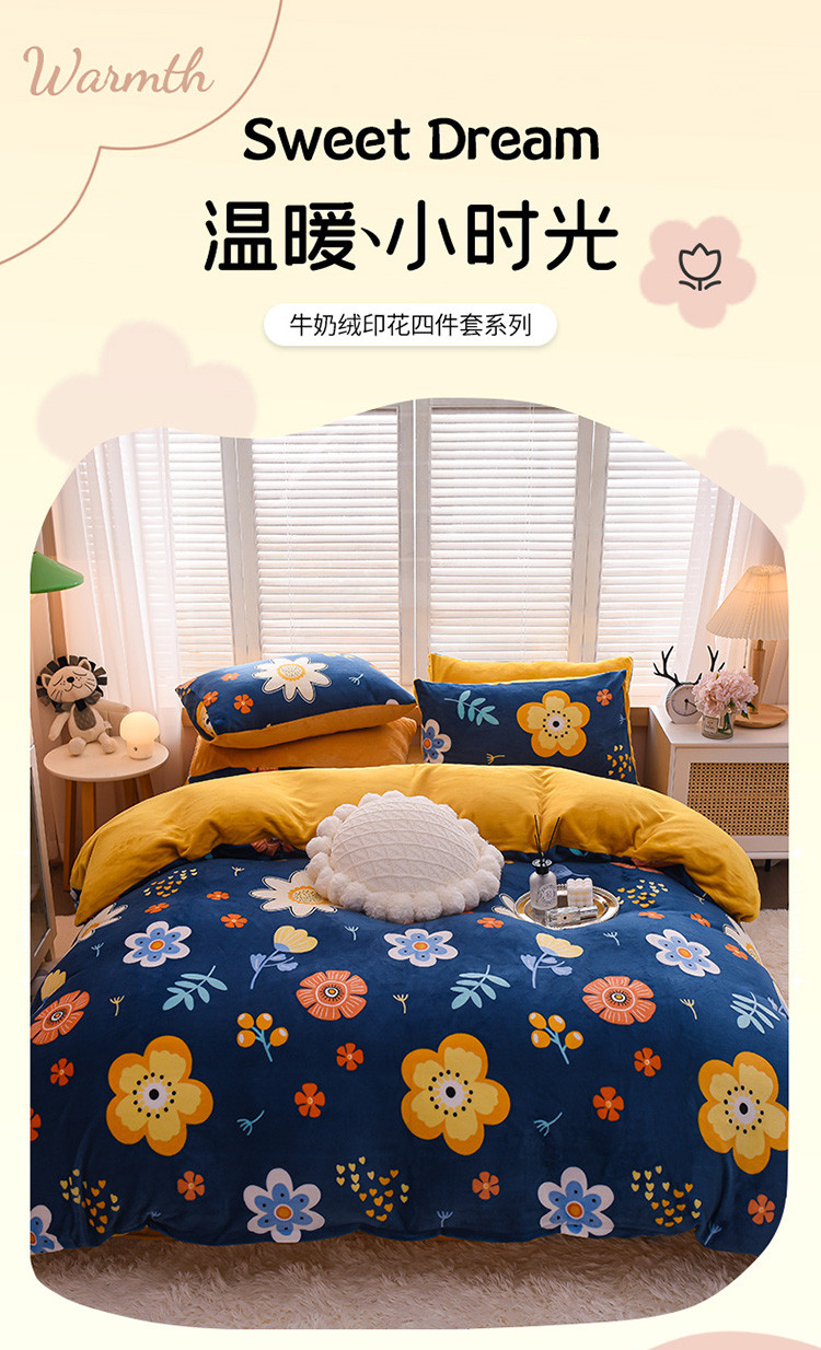 商品名称:芃成 2022新款加厚双面牛奶绒印花床品系列-四件套 陌上花