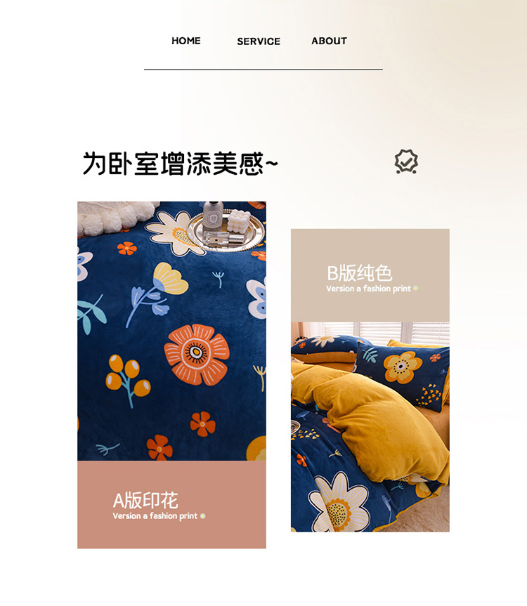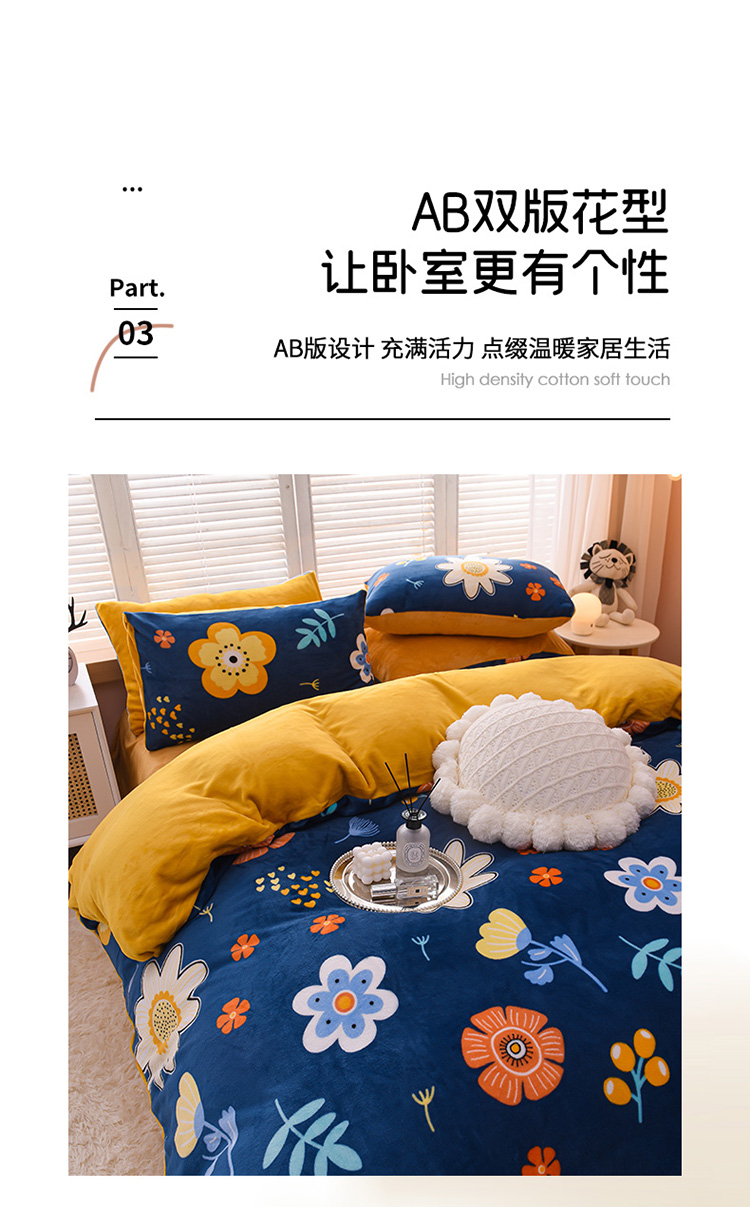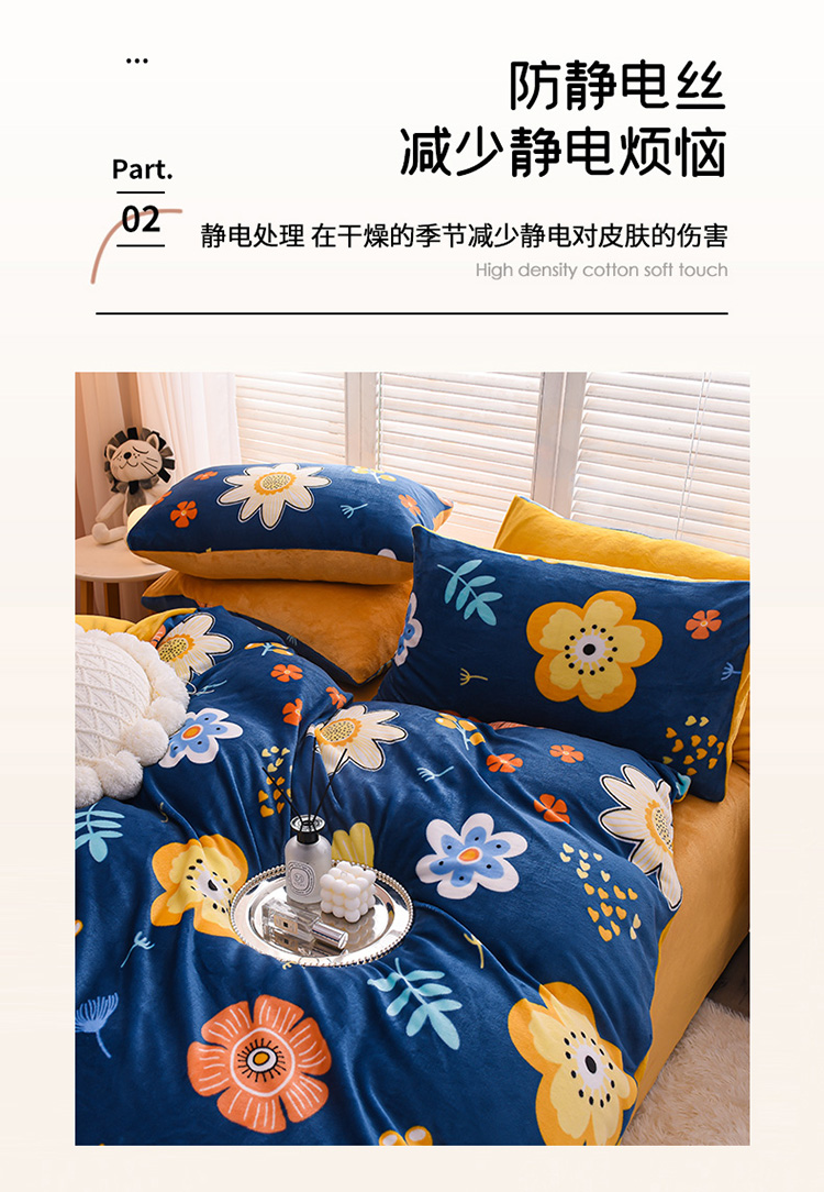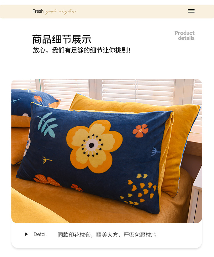 商品名称:芃成 2022新款加厚双面牛奶绒印花床品系列-四件套 陌上花