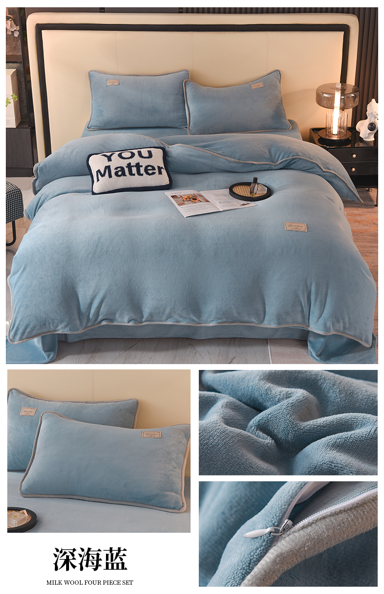 当前位置: 91家纺网 > 商品网购 > 床品套件 > 四件套 > 牛奶绒四件套 > 518家纺 新款220克牛奶绒纯色四件套支持定制 深海蓝