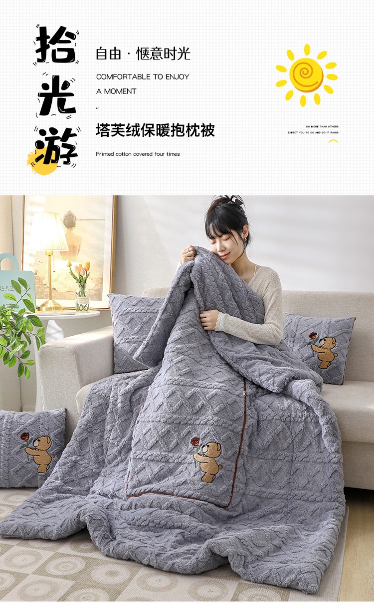 (总)宝马家纺 2022新款塔芙绒毛巾绣系列多功能抱枕被
