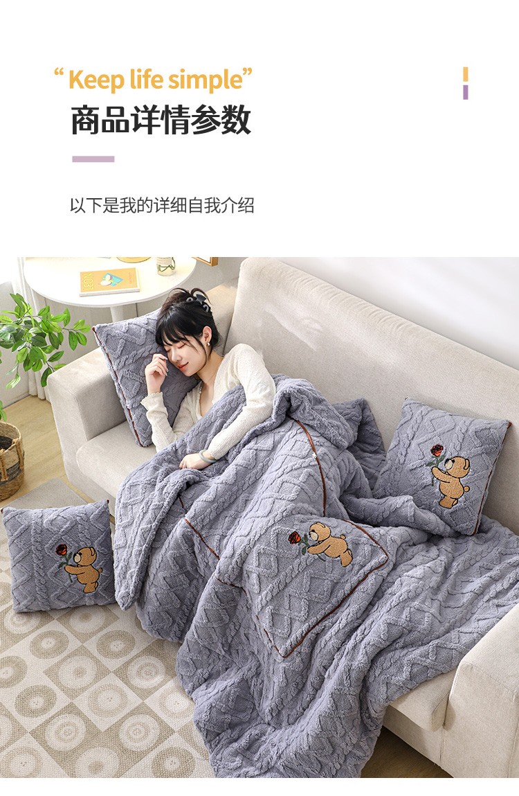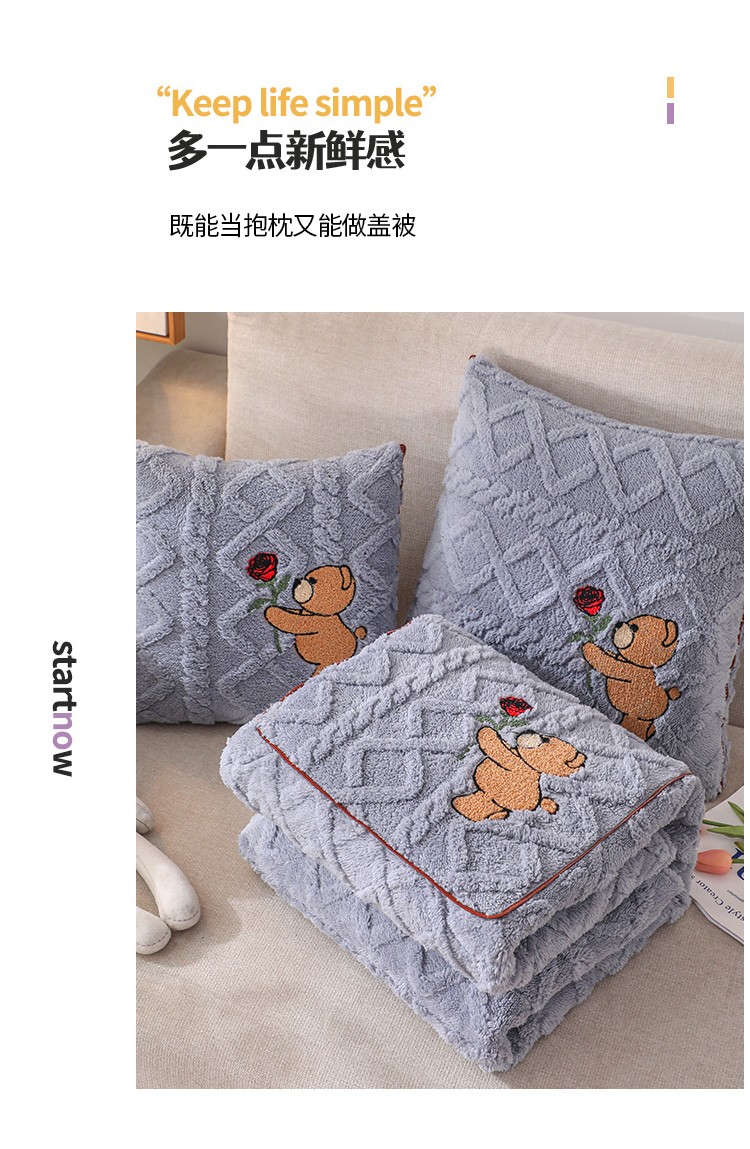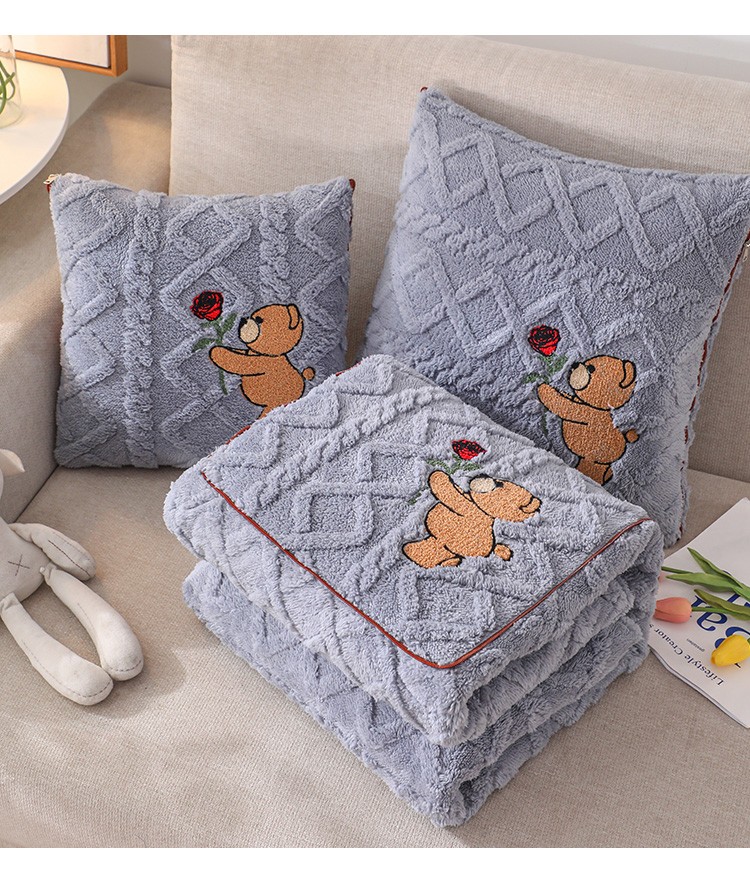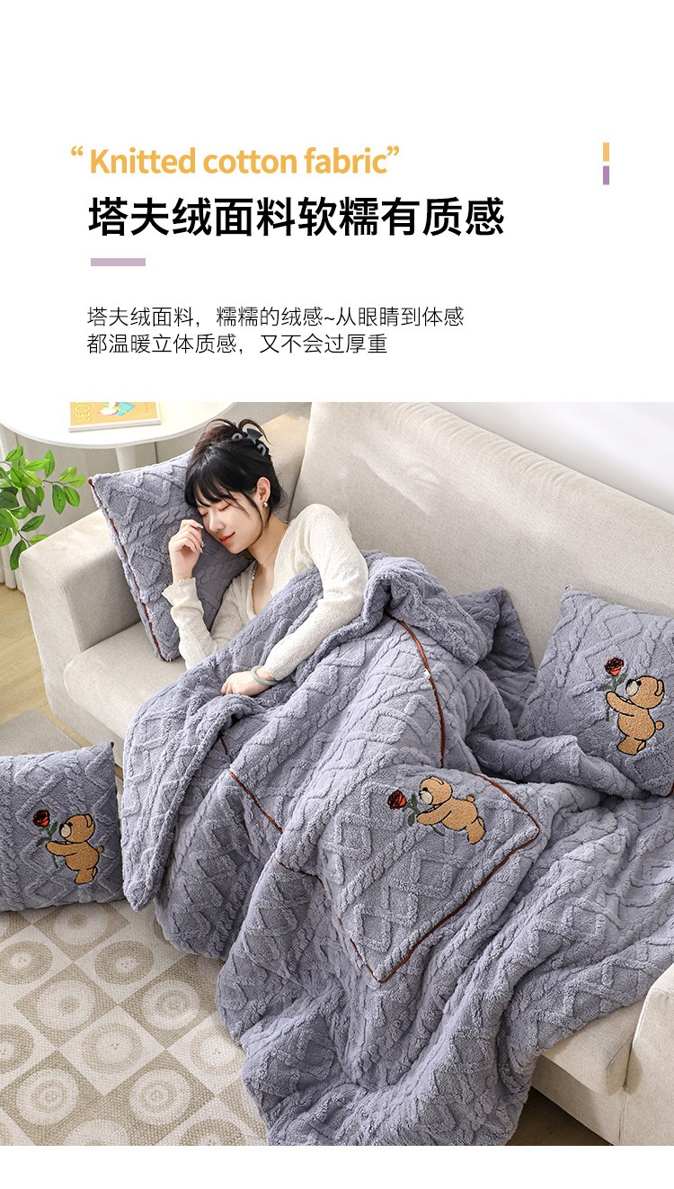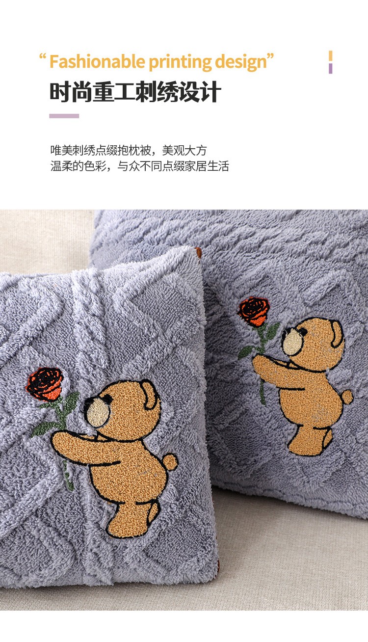 (总)宝马家纺(原梦童画) 2024新款泰迪熊毛巾绣联名款减压式加厚抱枕毯,豆沙粉,粉色,黑色,灰色,绿色,柠檬黄,天空蓝