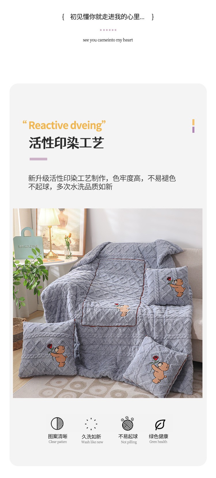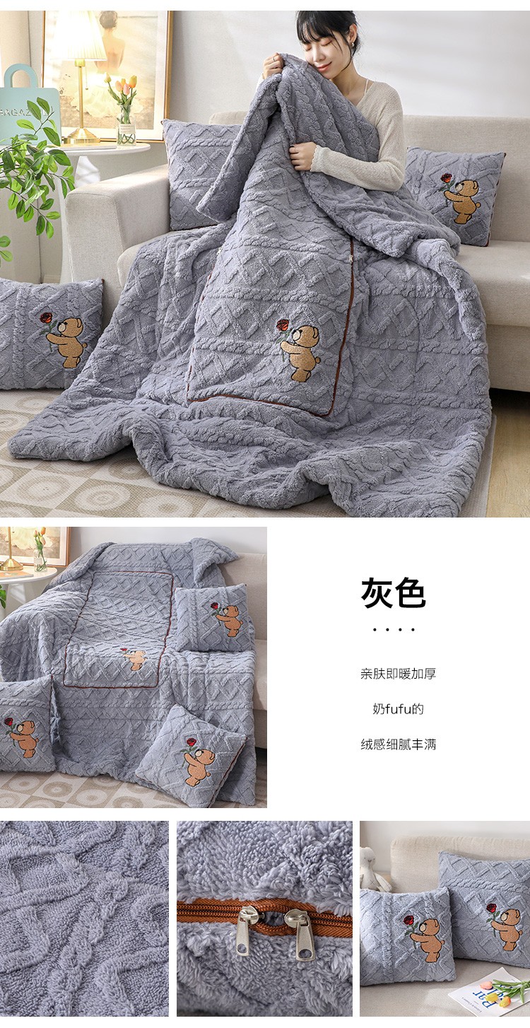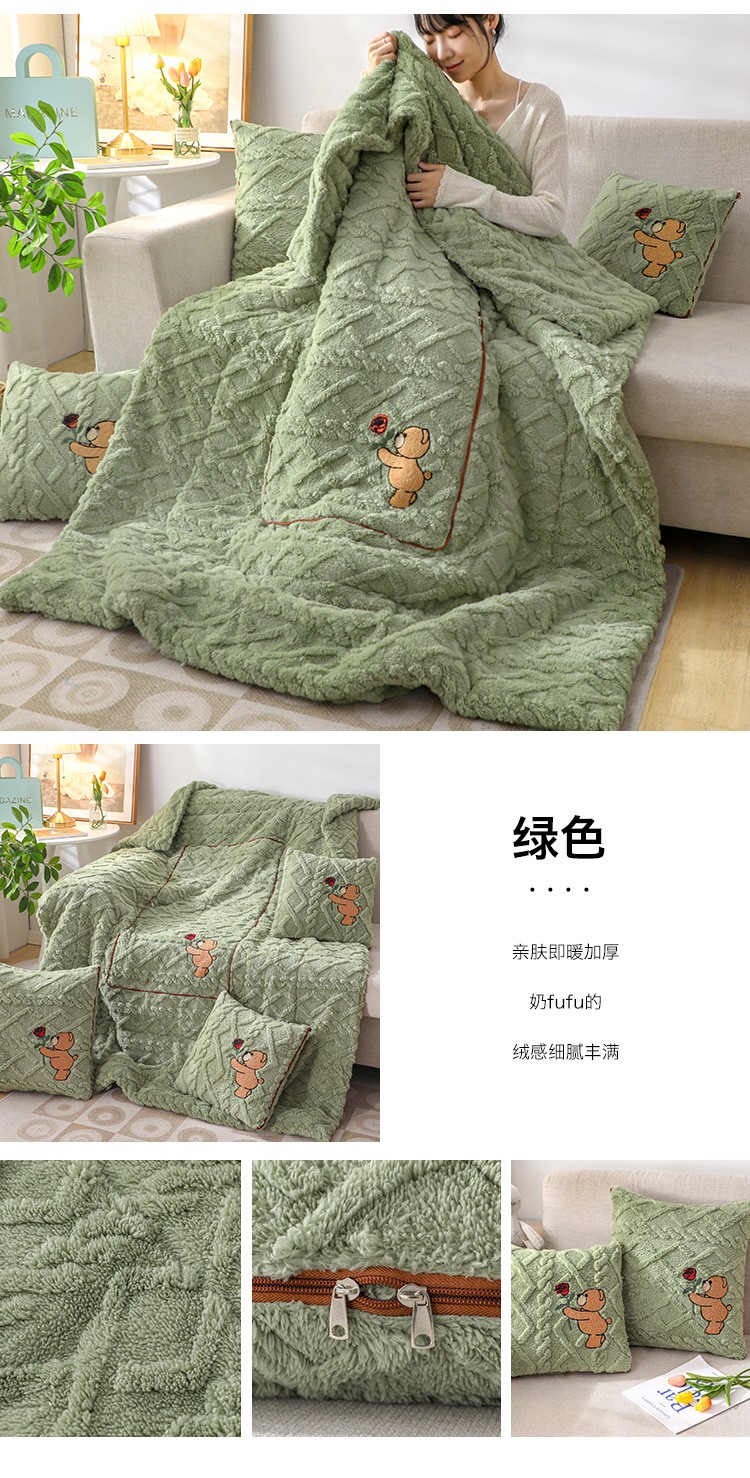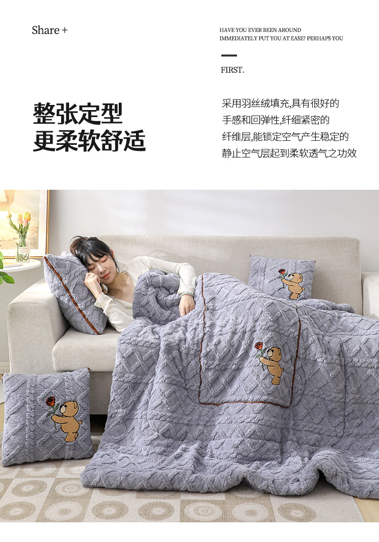 (总)宝马家纺(原梦童画) 2024新款泰迪熊毛巾绣联名款减压式加厚抱枕毯,豆沙粉,粉色,黑色,灰色,绿色,柠檬黄,天空蓝