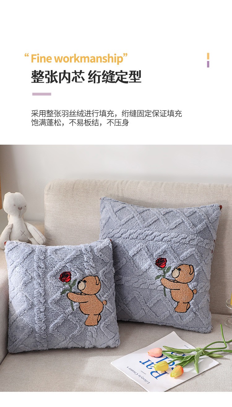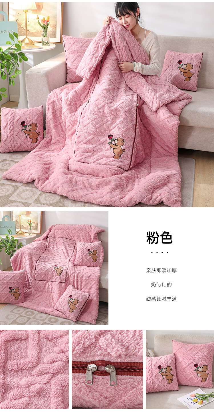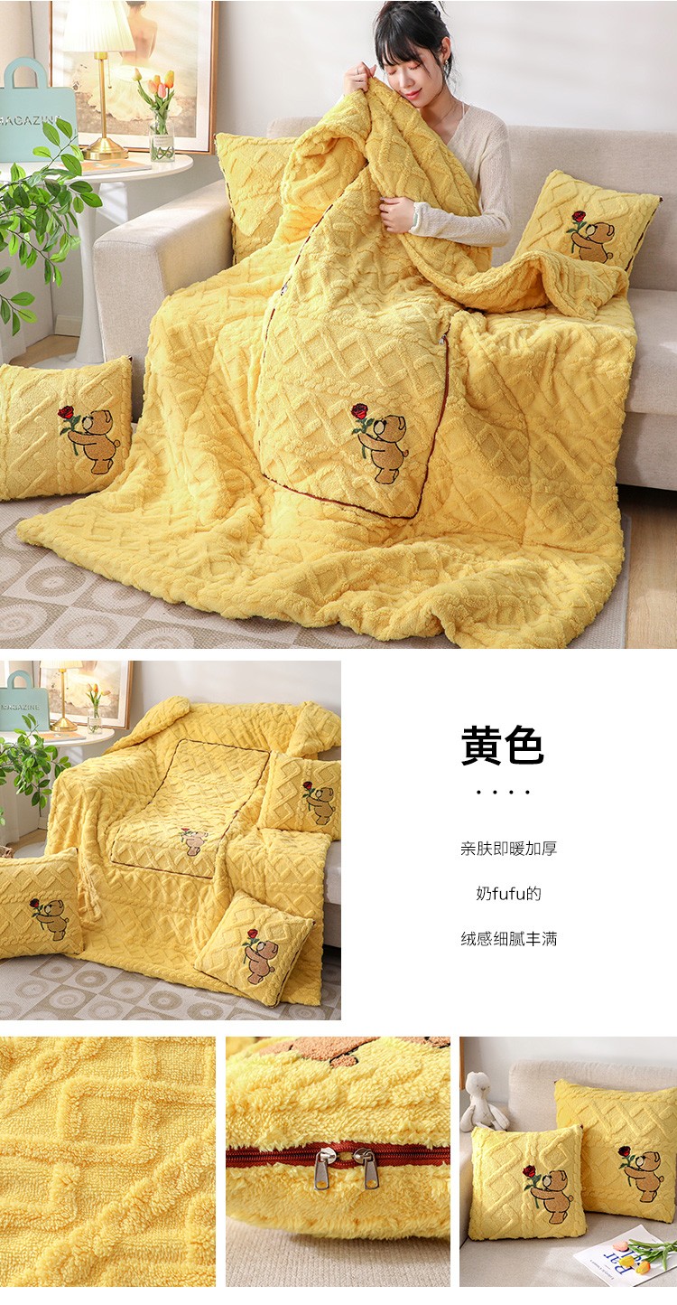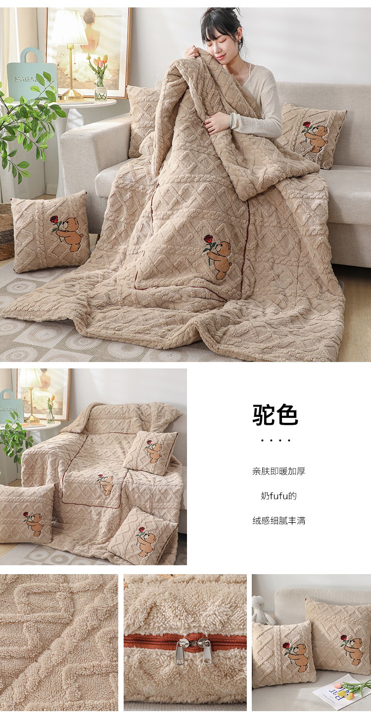 (总)宝马家纺(原梦童画) 2024新款泰迪熊毛巾绣联名款减压式加厚抱枕毯,豆沙粉,粉色,黑色,灰色,绿色,柠檬黄,天空蓝