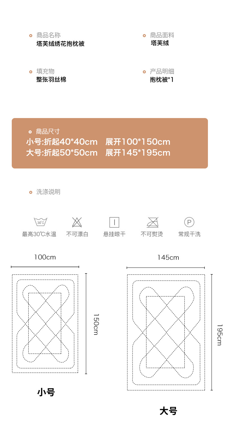 商品名称:(总)宝马家纺 2022新款塔芙绒毛巾绣系列多功能抱枕被
