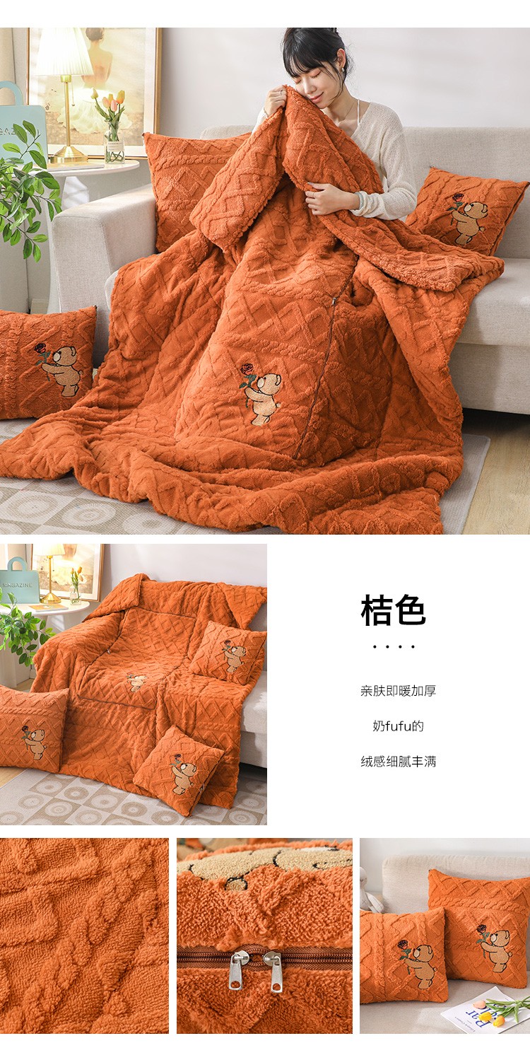 (总)宝马家纺(原梦童画) 2024新款牛奶绒加厚“哈吉米”卡通造型抱枕被,豆沙粉,橄榄绿,高级黑,天空蓝,雾霾蓝,香芋紫