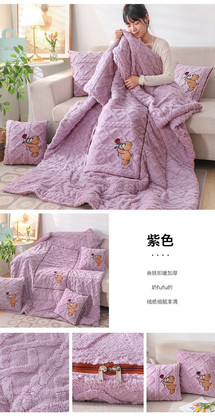 (总)宝马家纺(原梦童画) 2025新款多巴胺风格牛奶绒贴布绣抱枕被,小狗-黑色,兔子-粉,雪人-紫色,眼镜熊-绿,组合