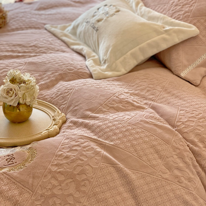 馨蕊家居 2022新款轻奢煦暖绒莫奈系列四件套-第 三组 莫奈-蔷薇粉