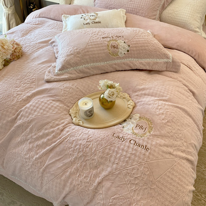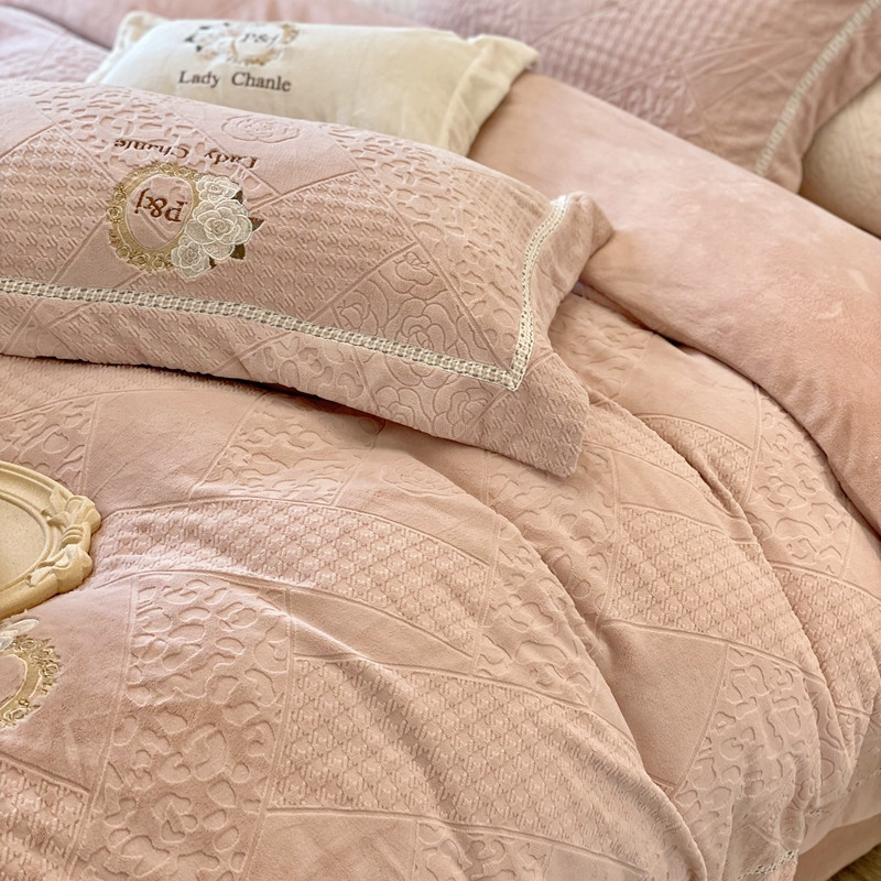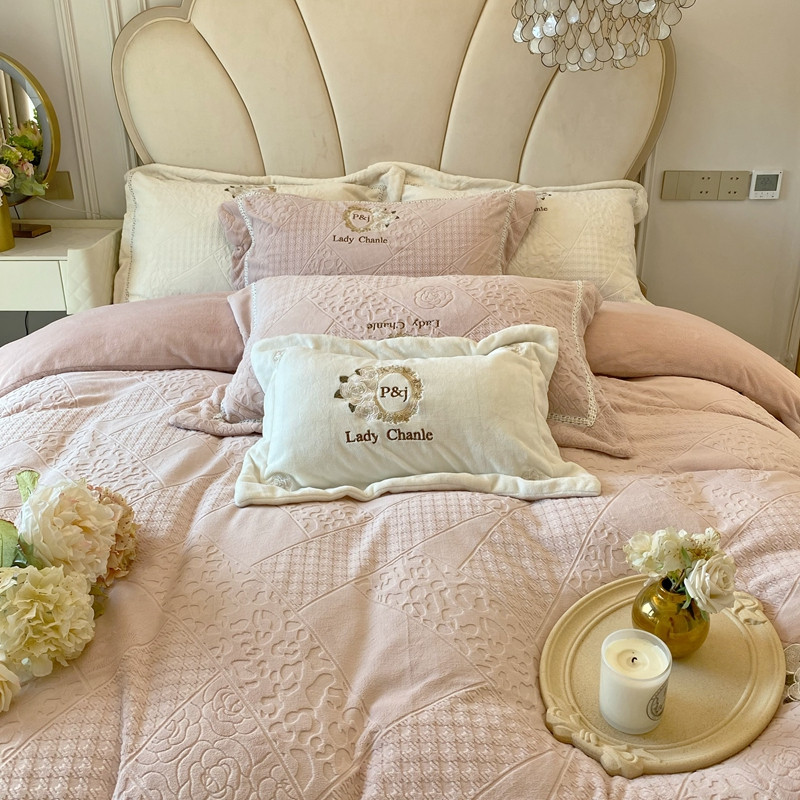 (总)馨蕊家居 2025新款意大利进口高精密刺绣拼角工艺秋冬法式高奢雪貂绒系列-绒雪芙 会员-10【券后控价358/378】,绒雪芙-奶咖,绒雪芙-蔷薇粉,绒雪芙-婉若紫,绒雪芙-月光白