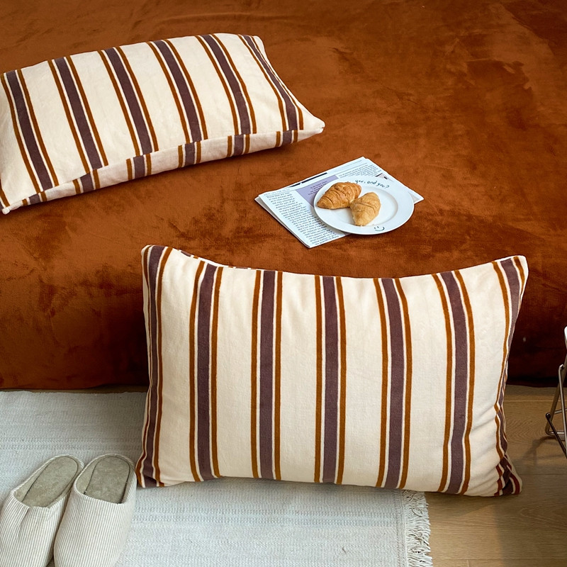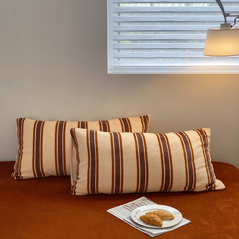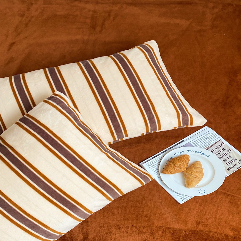 桃喜 2022新款牛奶绒条纹枕套 燕麦奶咖