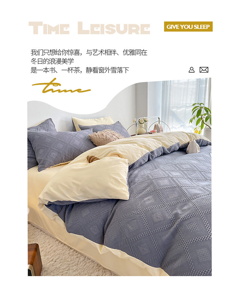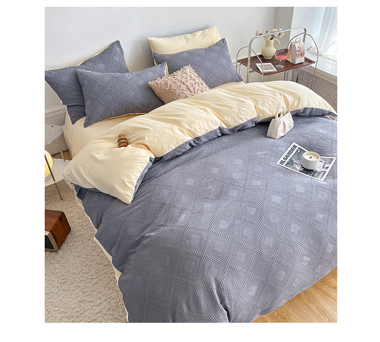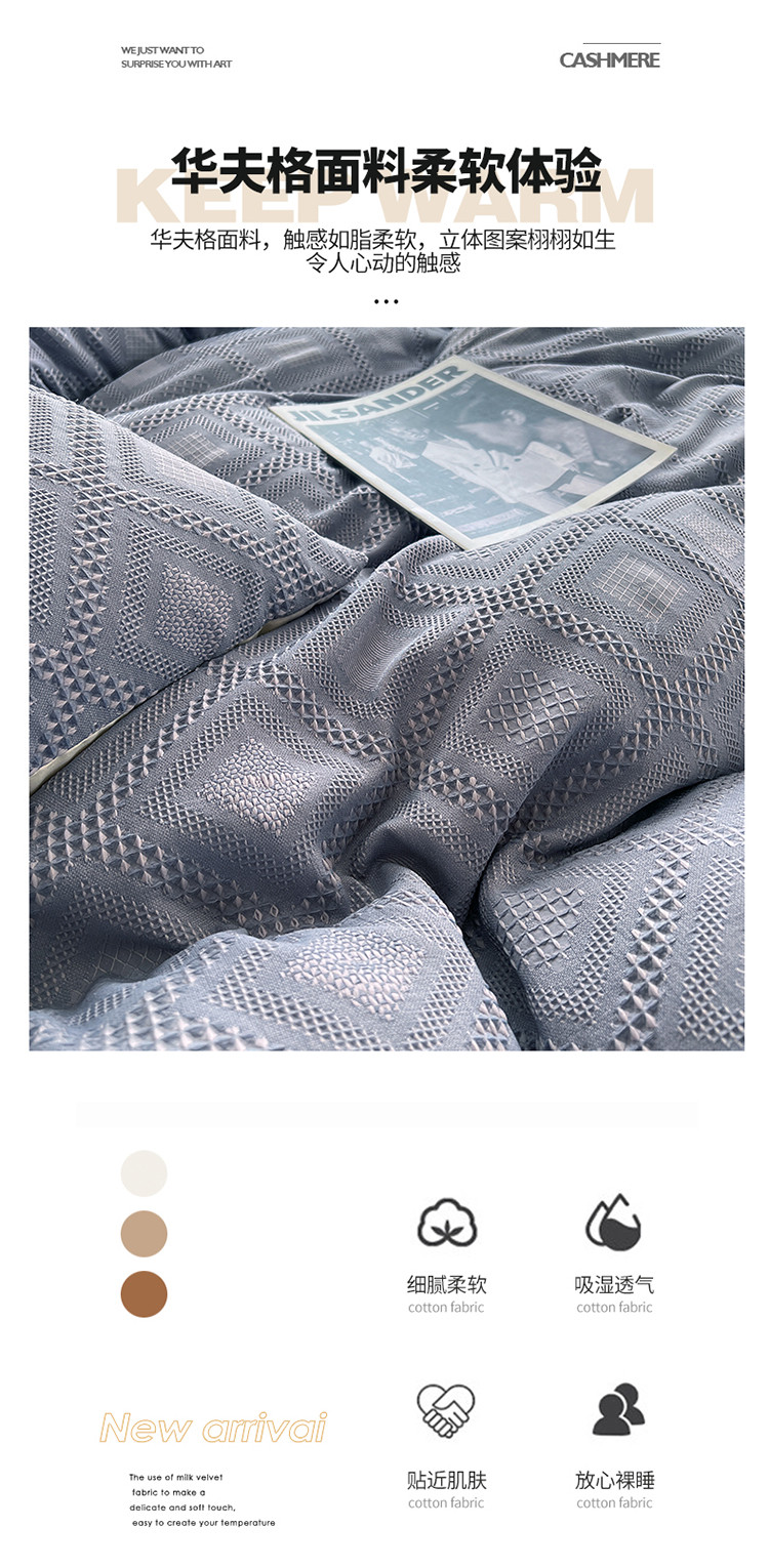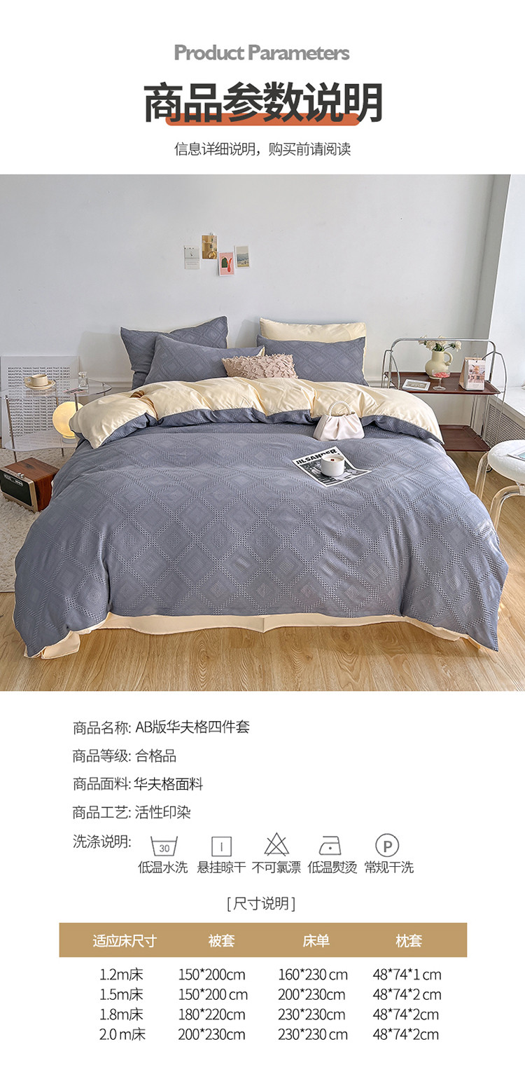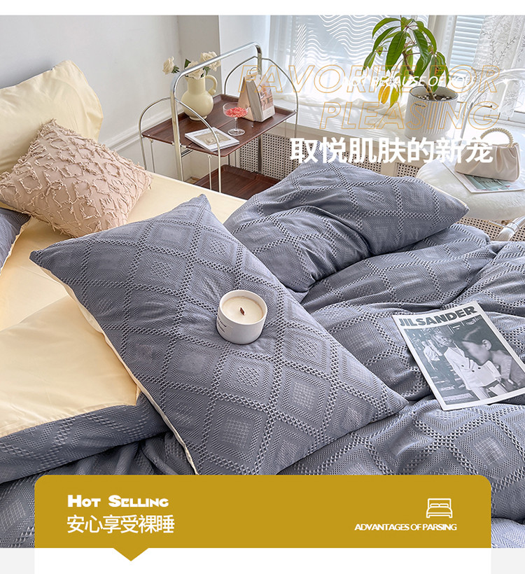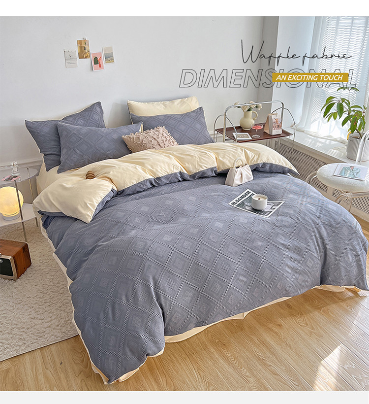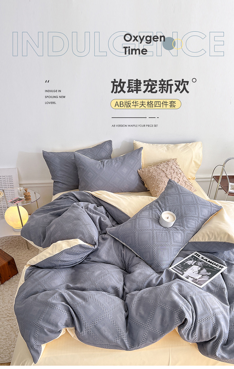 (总)米粒家纺 2023新款AB版华夫格四件套,金咖,琉璃绿,莫兰,木果,奶黄,奶油白,浅紫,清新绿,石墨兰,梧桐紫,银色,樱花粉