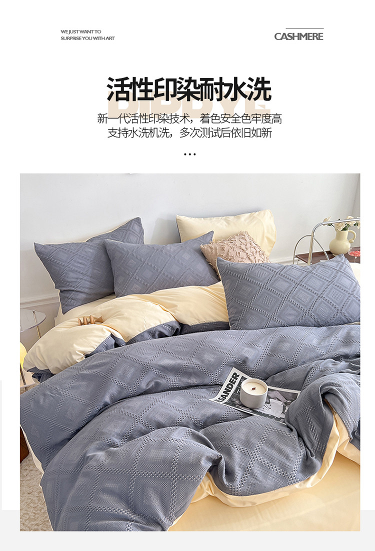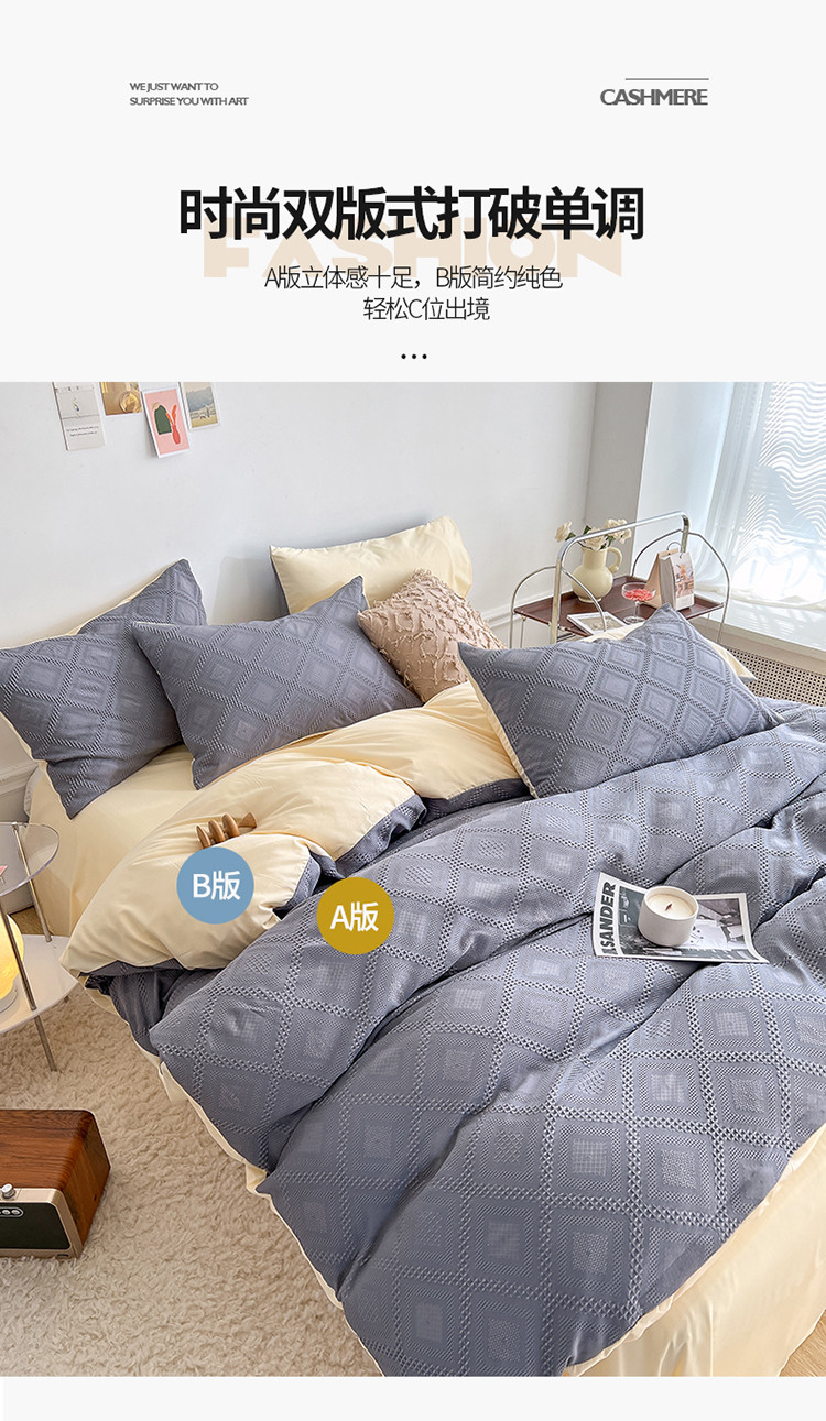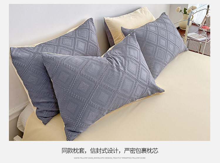 商品名称:米粒 2022直播爆款纯色AB版华夫格四件套磨毛水洗棉 紫米
