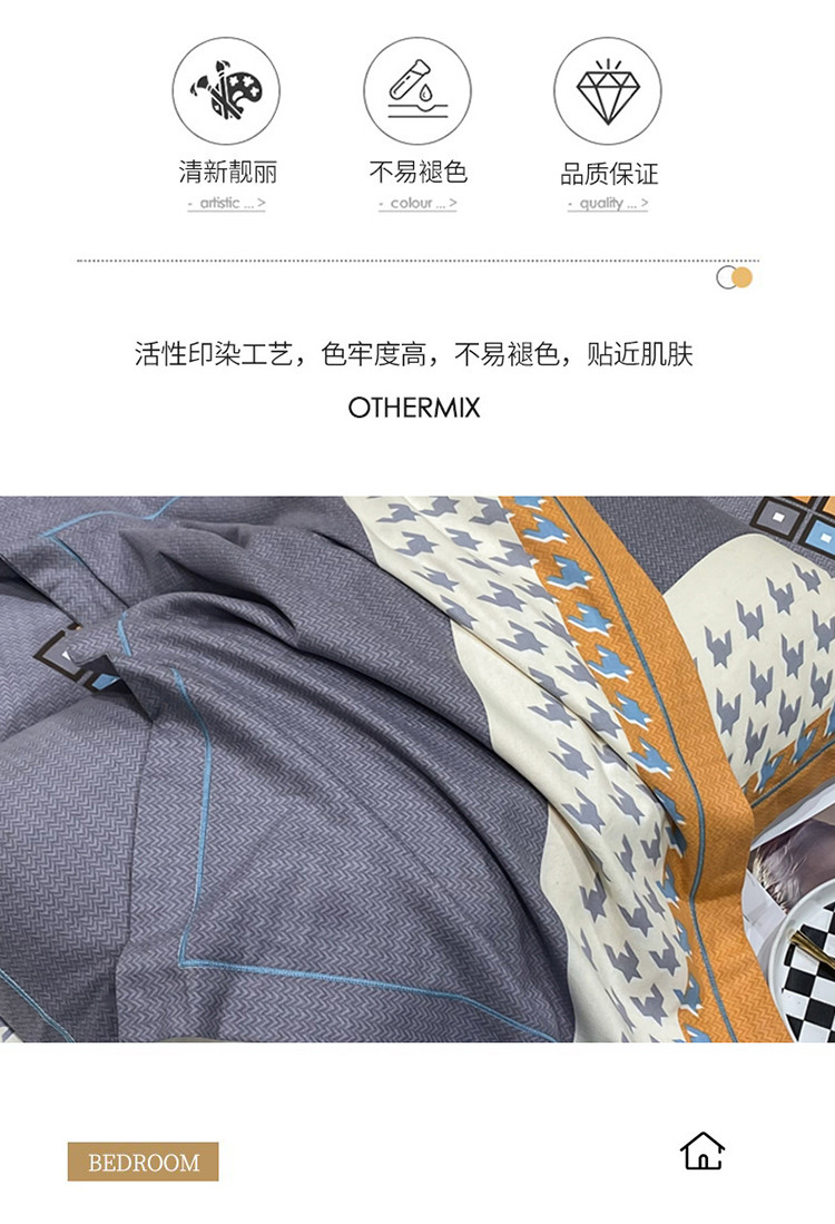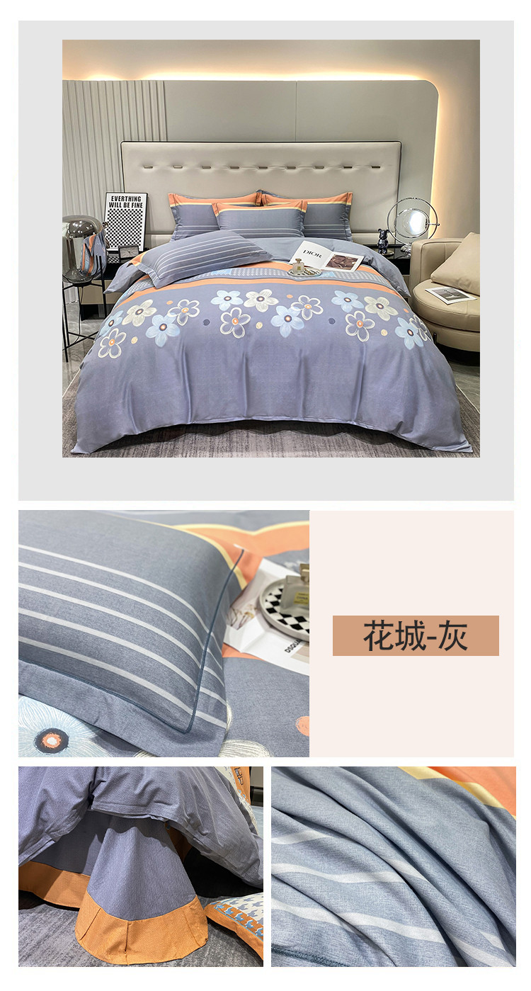 商品名称:金纱玉纺 2023新款全棉加厚磨毛四件套 花城-灰