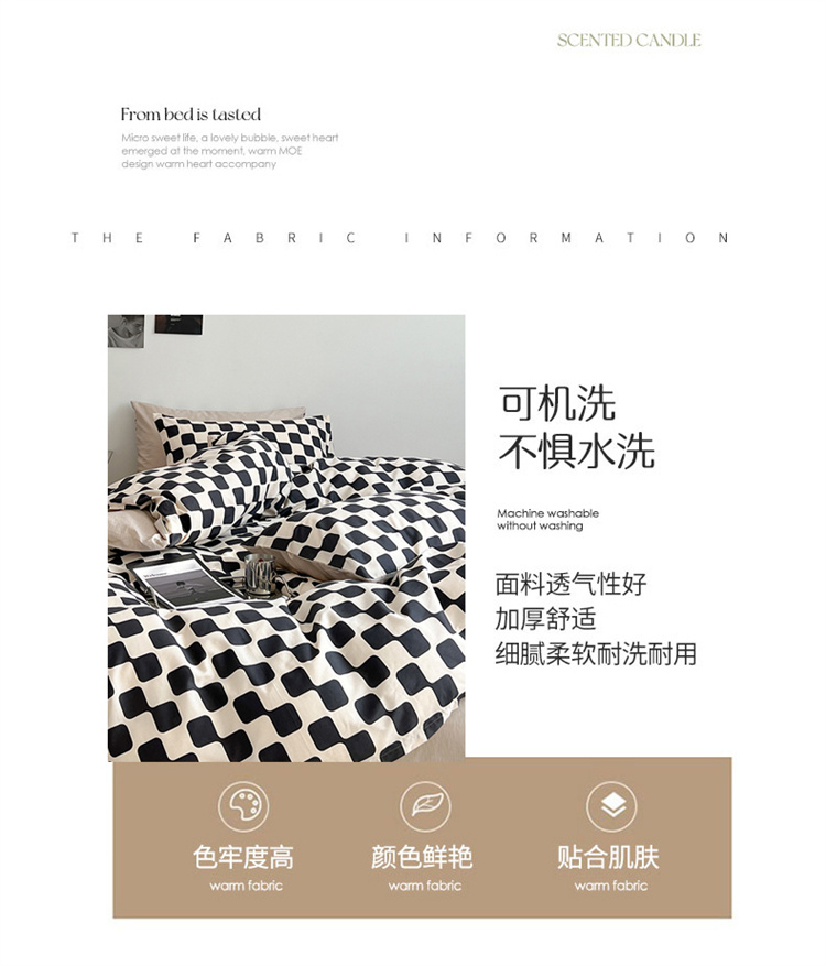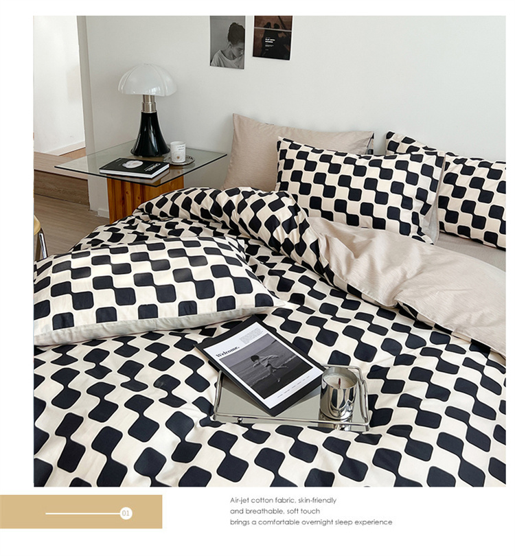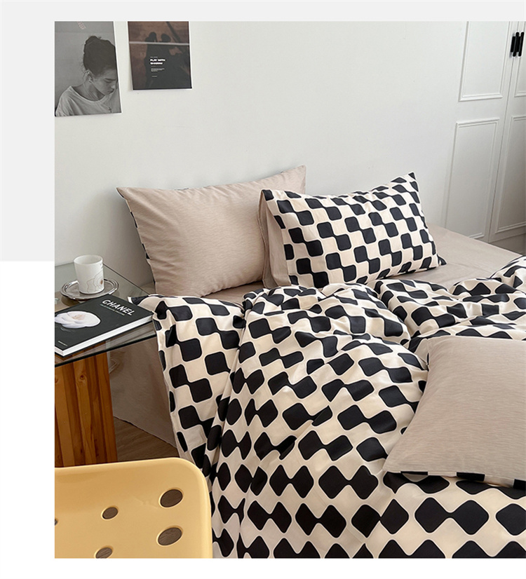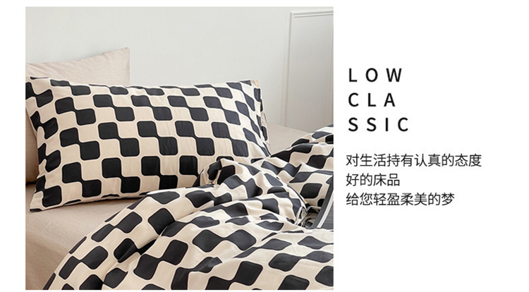 当前位置: 91家纺网 > 商品网购 > 床品套件 > 四件套 > 全棉普通四件套 > 麦伦家居 2023春夏新品ins小清新简约全棉斜纹四件套 黑米格