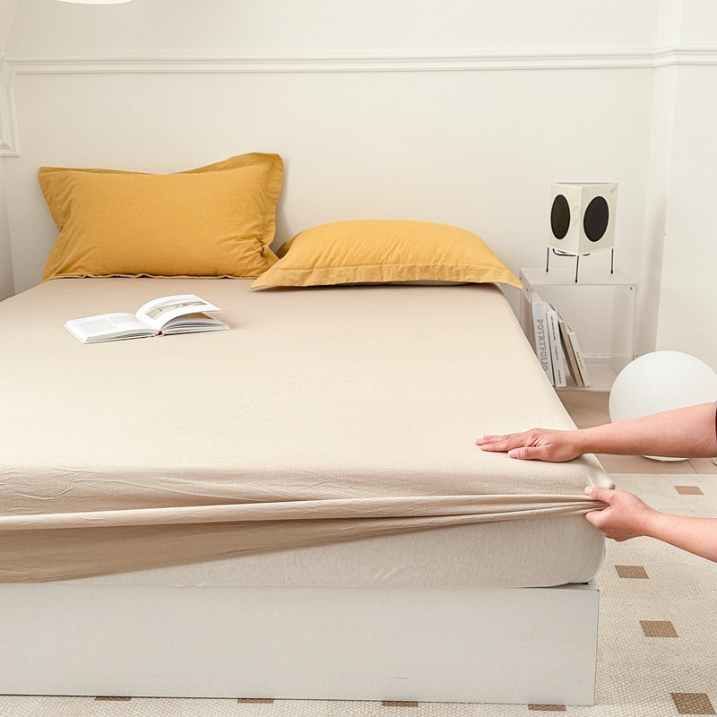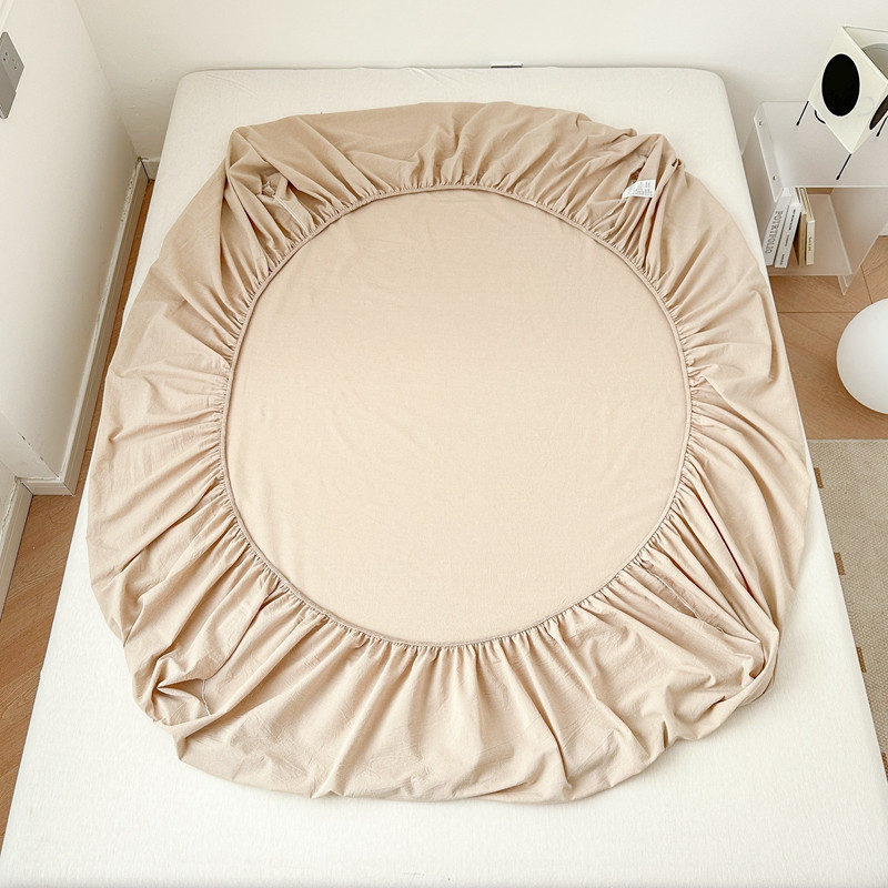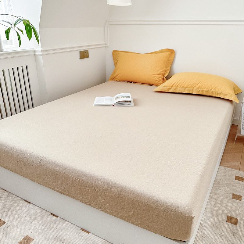商品名称:嘉汀兰 2023新款全棉色织水洗棉纯色撞色款单床笠 驼米