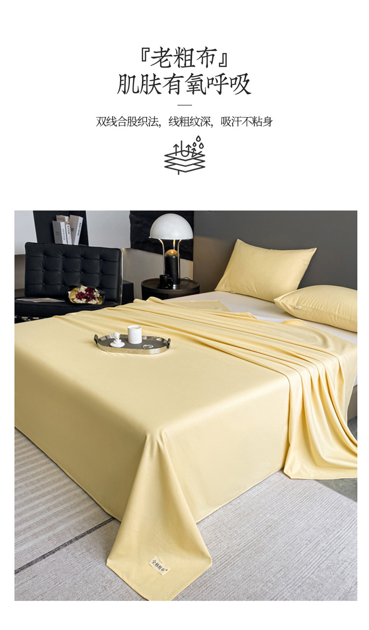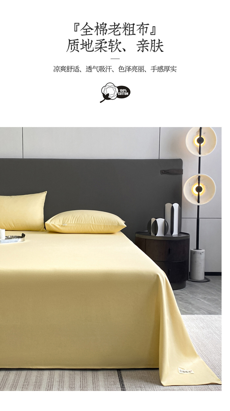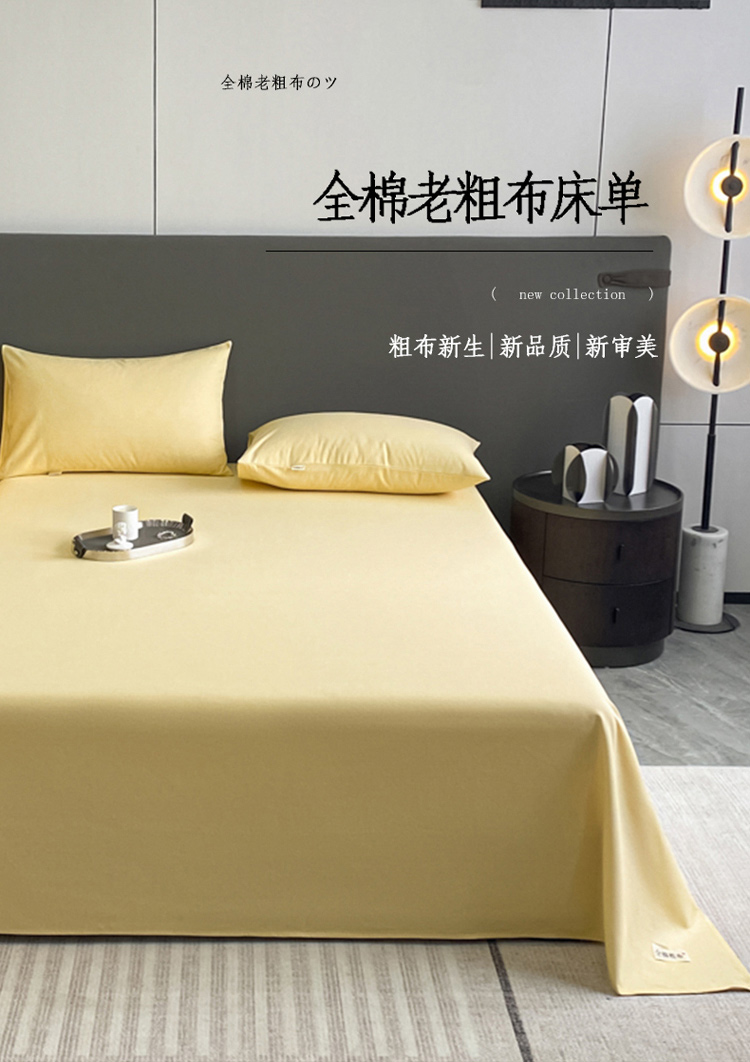 卧趣家纺 2023新款全棉老粗布单品系列单床单 月白-黄