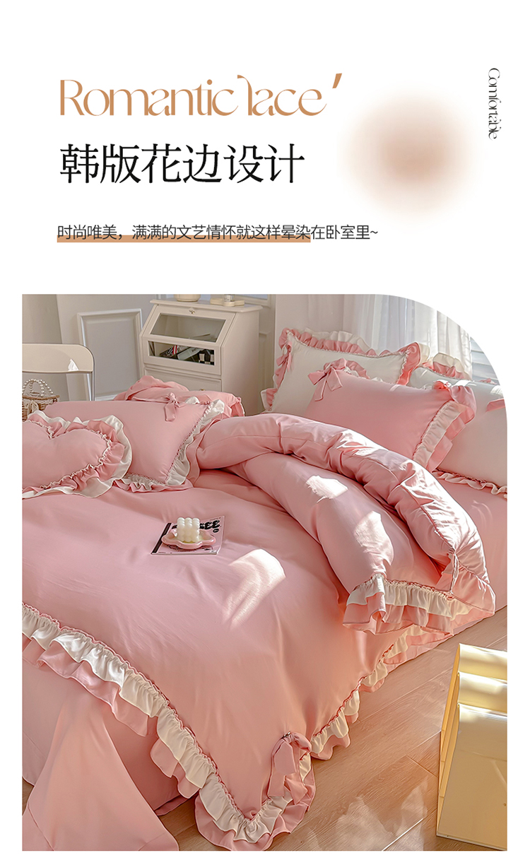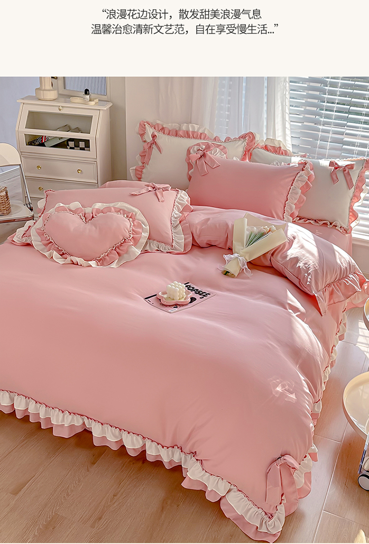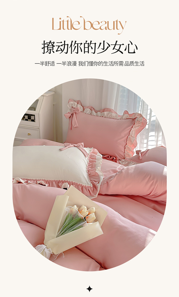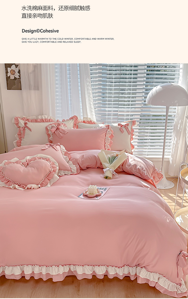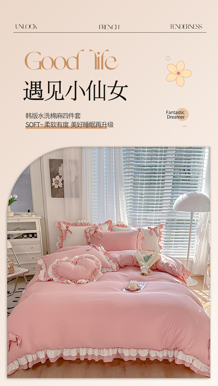 言熙居 2024新款直播韩版花边水洗棉麻三件四件套小清新-玉