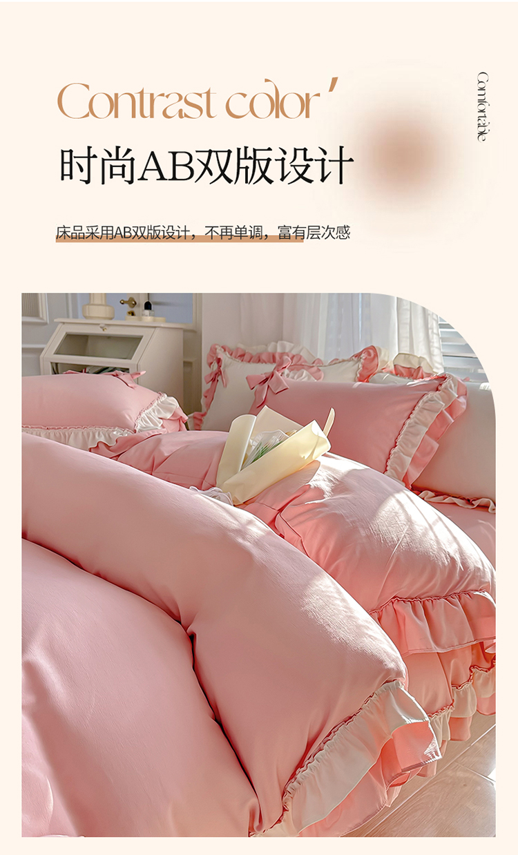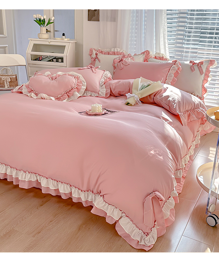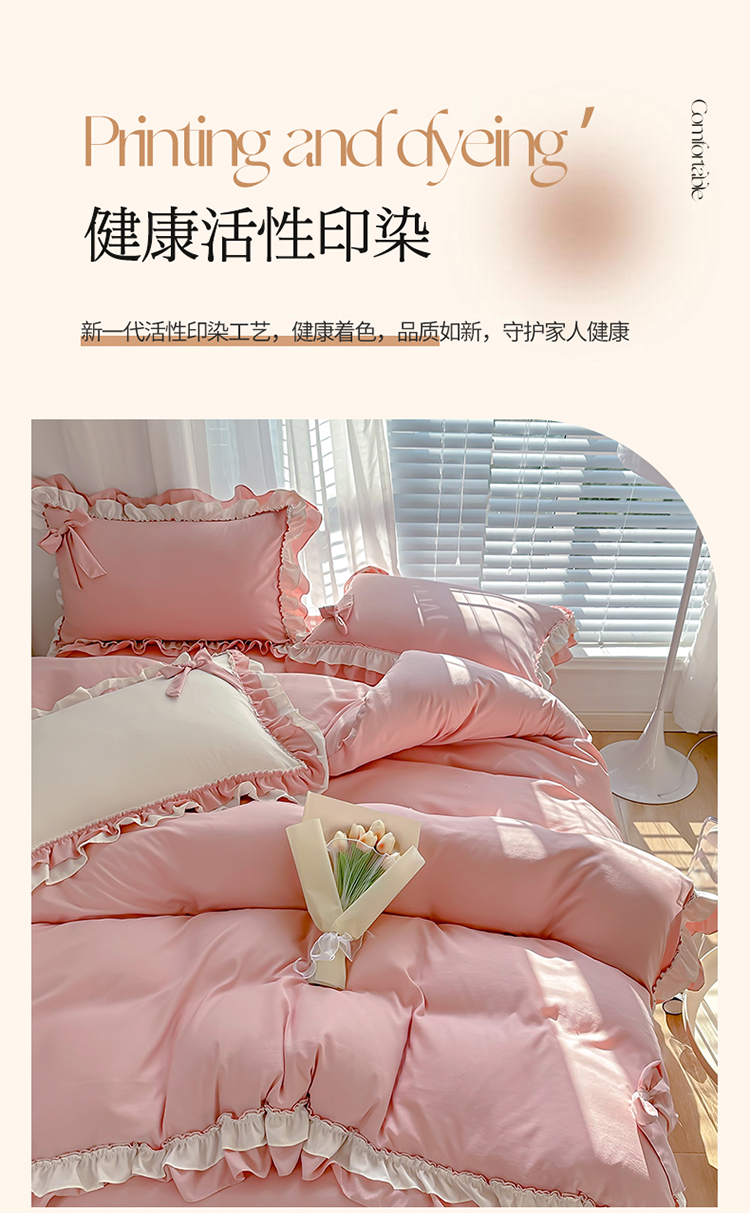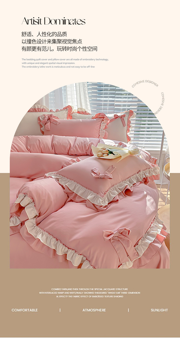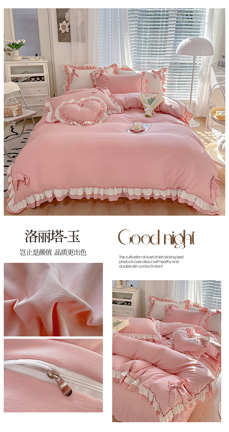言熙居 2024新款直播韩版花边水洗棉麻三件四件套小清新-玉