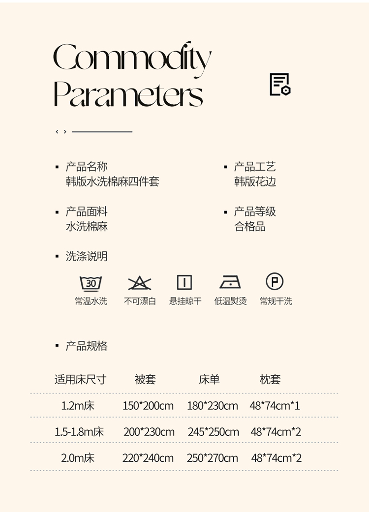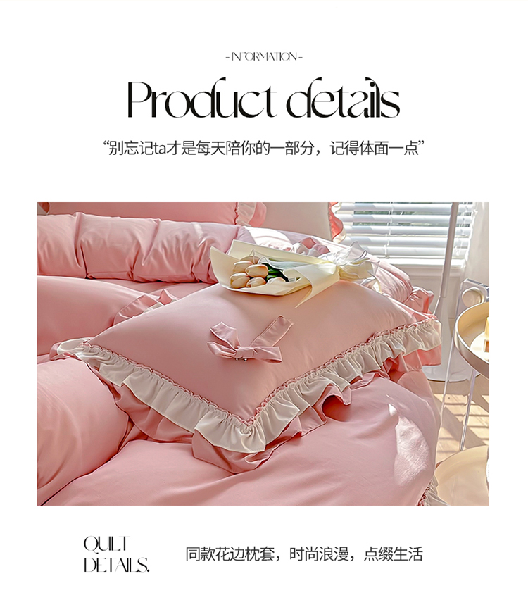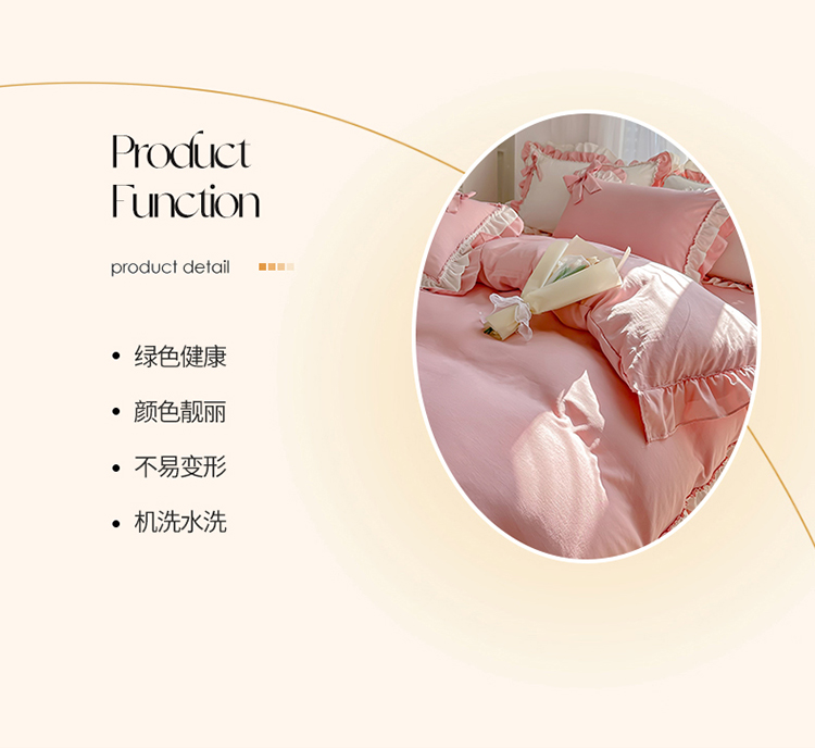 商品名称:言熙居 2024新款直播韩版花边水洗棉麻三件四件套小清新-玉
