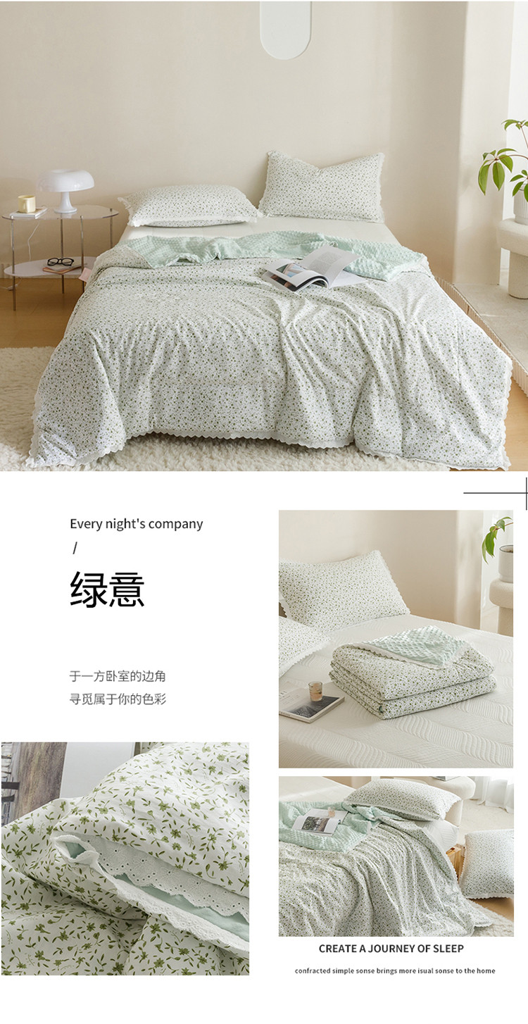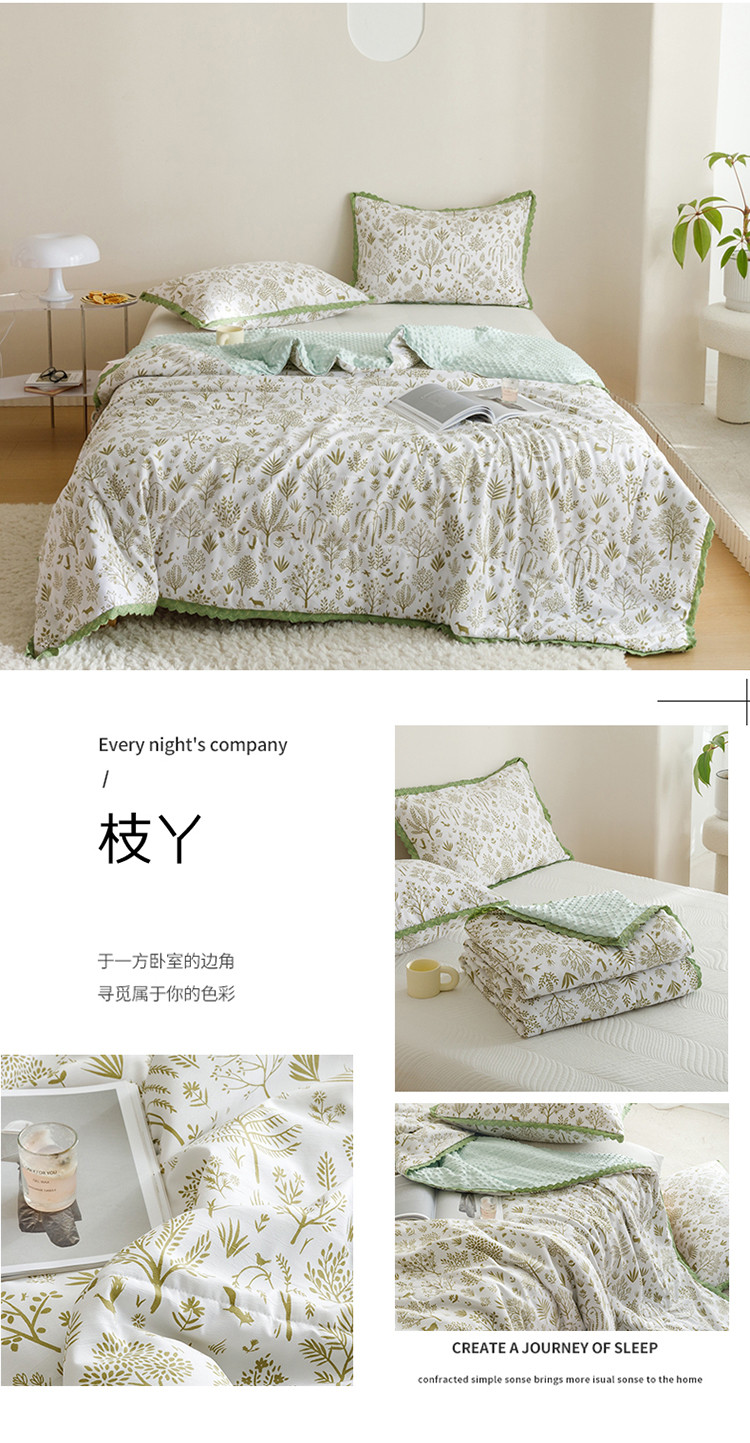 (总)有货 2023新款小清新花边韩版水洗棉麻豆豆夏被简约复古风,枫情,格格,绿野,绿意,南风,暖心,森林,盛开,太空,微笑,向阳花,小鹿,枝丫