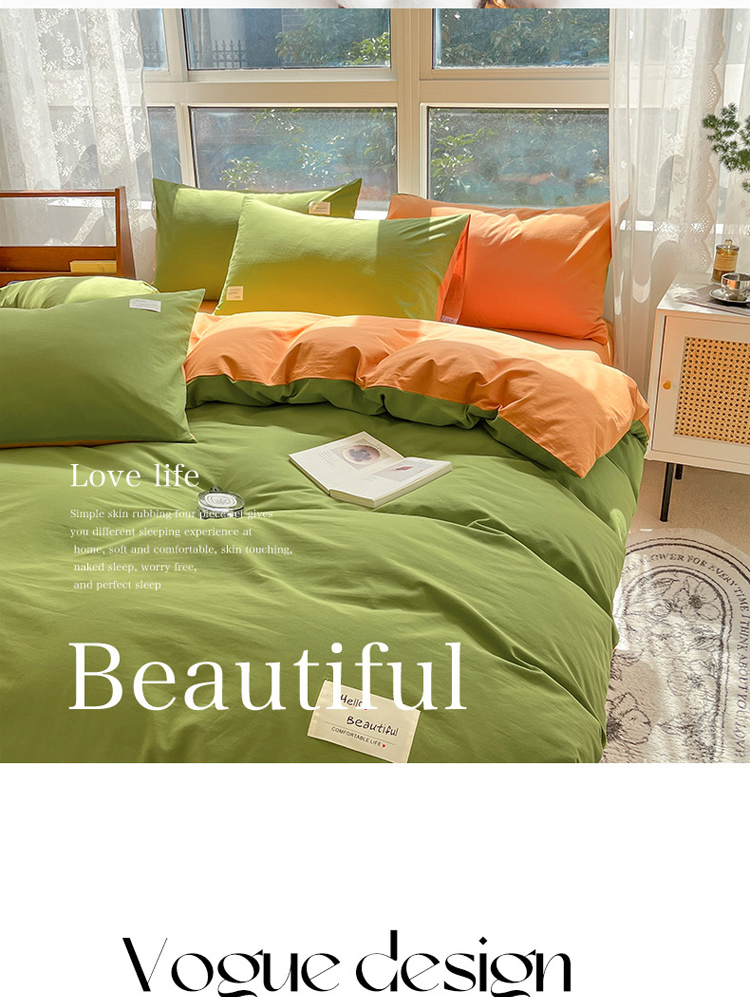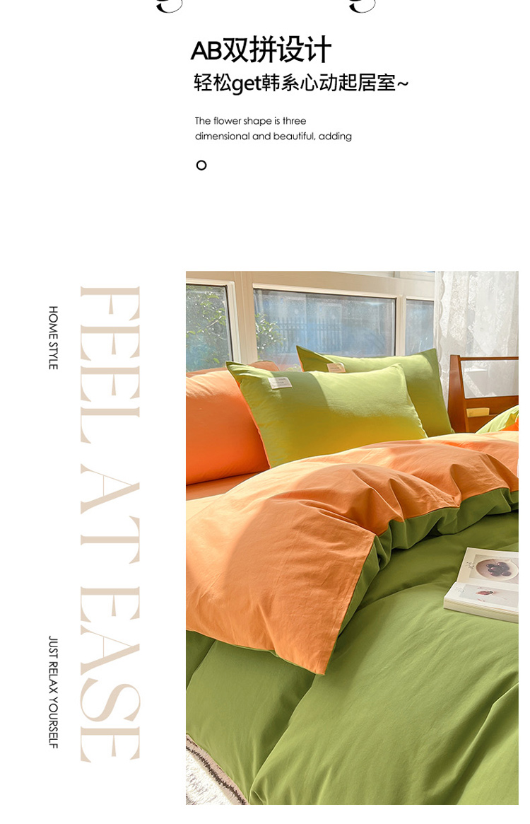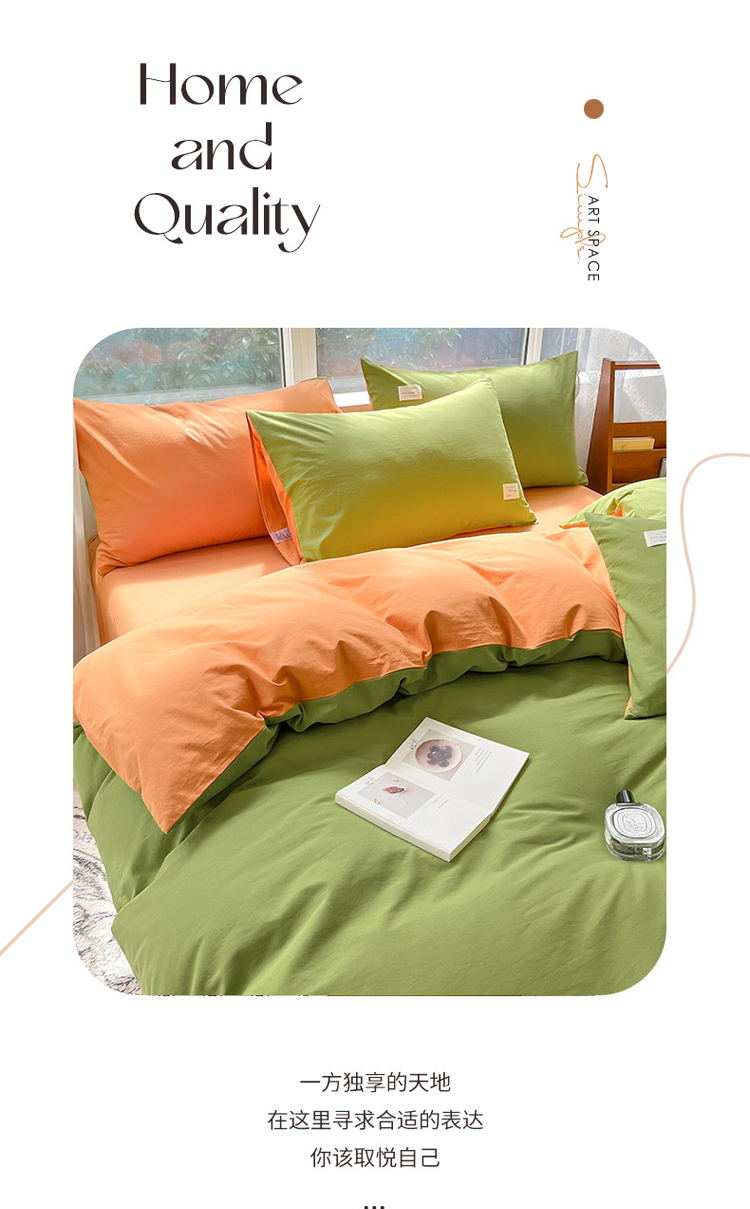 (总) 寐居 2023新款双拼全棉水洗棉纯色四件套,ins风-草绿色,ins风-湖绿色,ins风-裸粉色,ins风-迷雾蓝,ins风-奶油黄,ins风-柠檬黄,ins风-樱花粉,鹅黄+香芋紫,焦糖+卡其,军绿+焦糖,米黄+卡其,米黄+深粉,奶油玉+鹅黄,深粉+湖蓝,深蓝+焦糖,藏青+浅灰,绿+牛油果绿,米黄+浅蓝,抹茶绿+橡木黄,奶油玉+橄榄绿,奶油玉+香芋紫,浅豆沙+浅灰,深蓝+灰