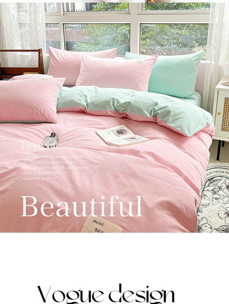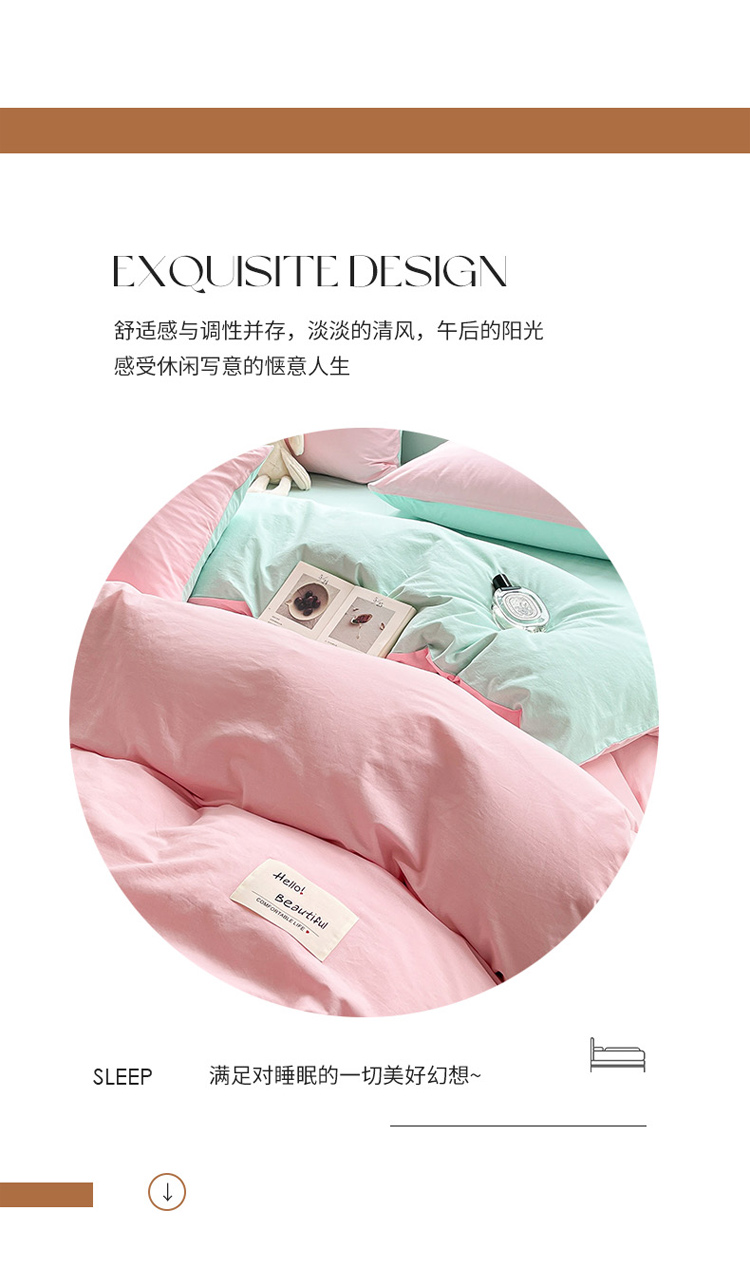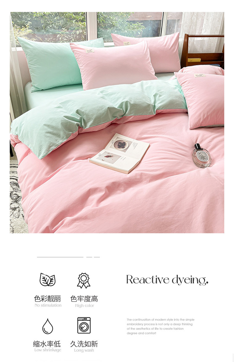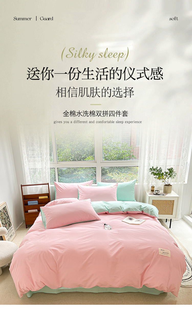 (总) 寐居 2023新款双拼全棉水洗棉纯色四件套,ins风-草绿色,ins风-湖绿色,ins风-裸粉色,ins风-迷雾蓝,ins风-奶油黄,ins风-柠檬黄,ins风-樱花粉,鹅黄+香芋紫,焦糖+卡其,军绿+焦糖,米黄+卡其,米黄+深粉,奶油玉+鹅黄,深粉+湖蓝,深蓝+焦糖,藏青+浅灰,绿+牛油果绿,米黄+浅蓝,抹茶绿+橡木黄,奶油玉+橄榄绿,奶油玉+香芋紫,浅豆沙+浅灰,深蓝+灰