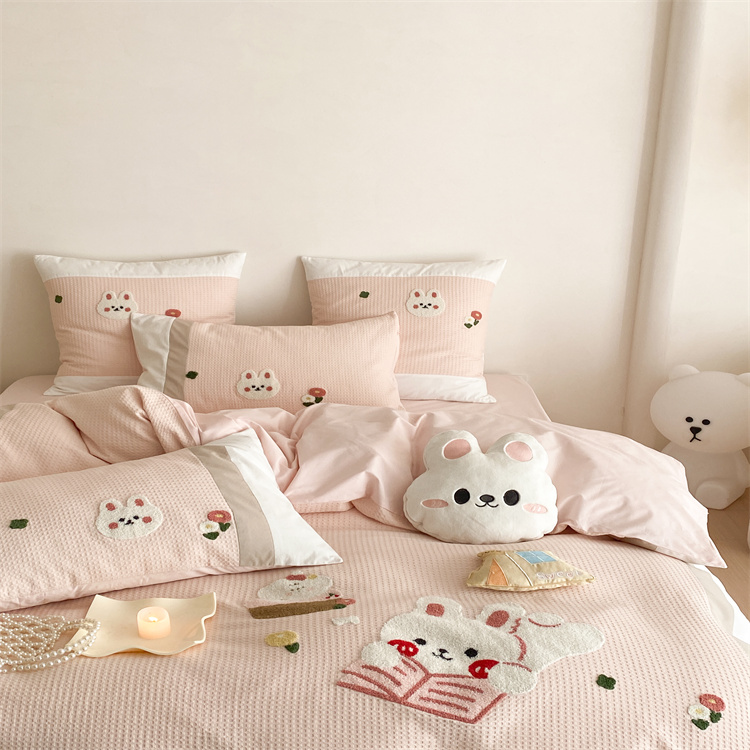 (总)星野 2023新款40s水洗棉贴布绣四件套-多巴胺女孩,多巴胺女孩