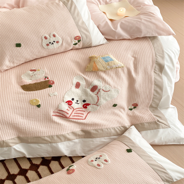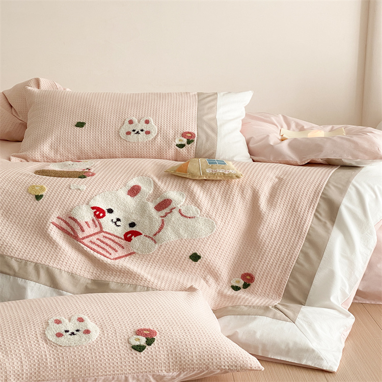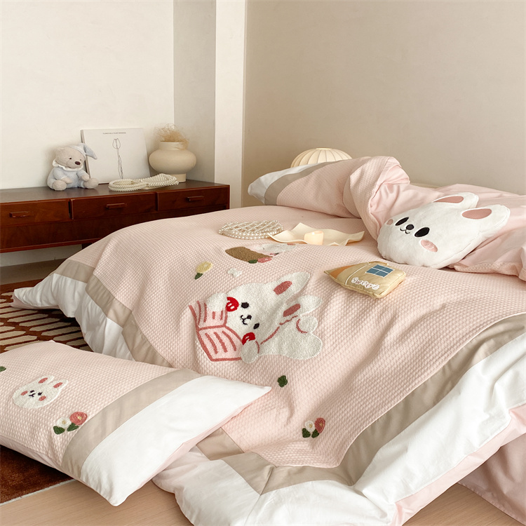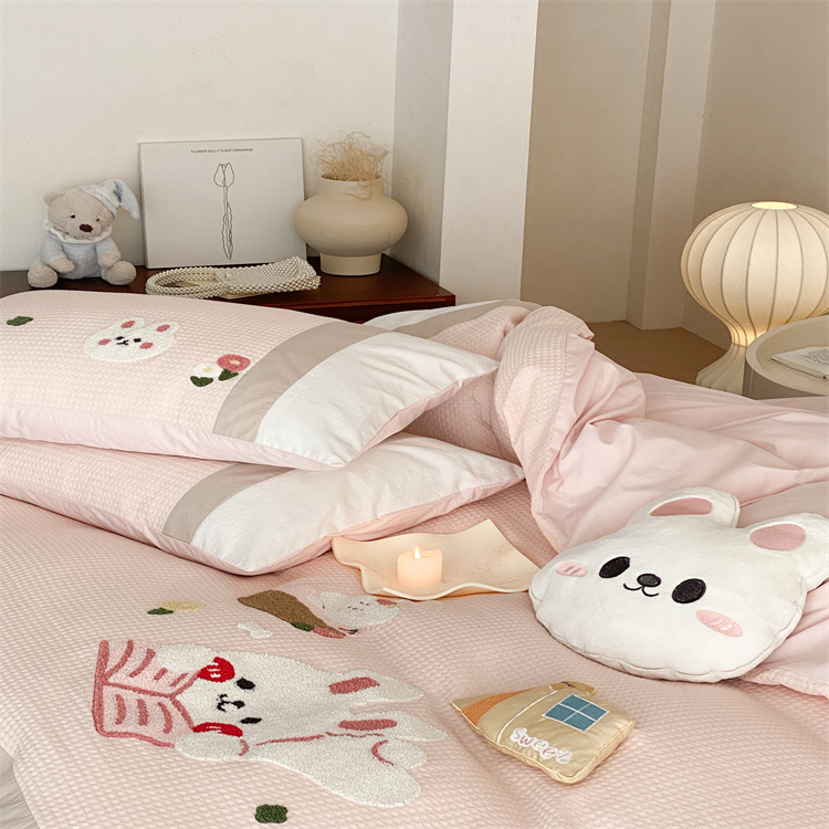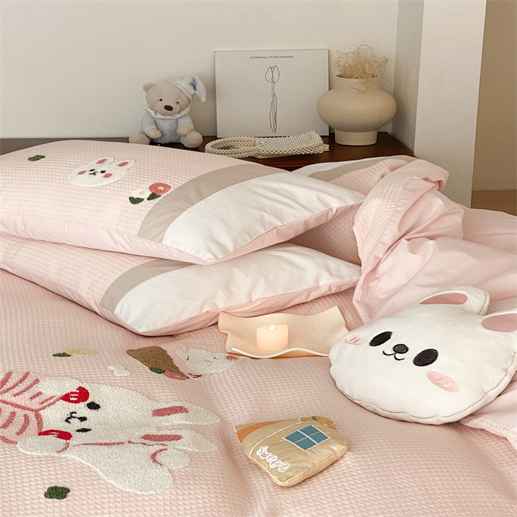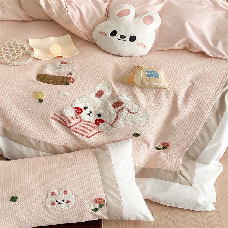 (总)星野 2025新款高克重牛奶绒贴布绣四件套-波点兔,波点兔