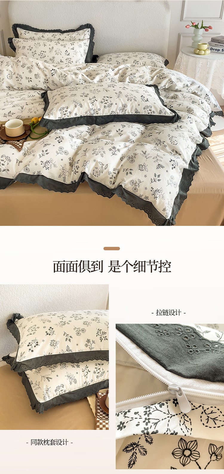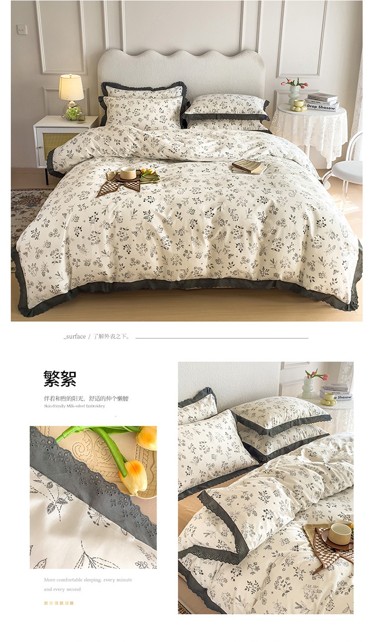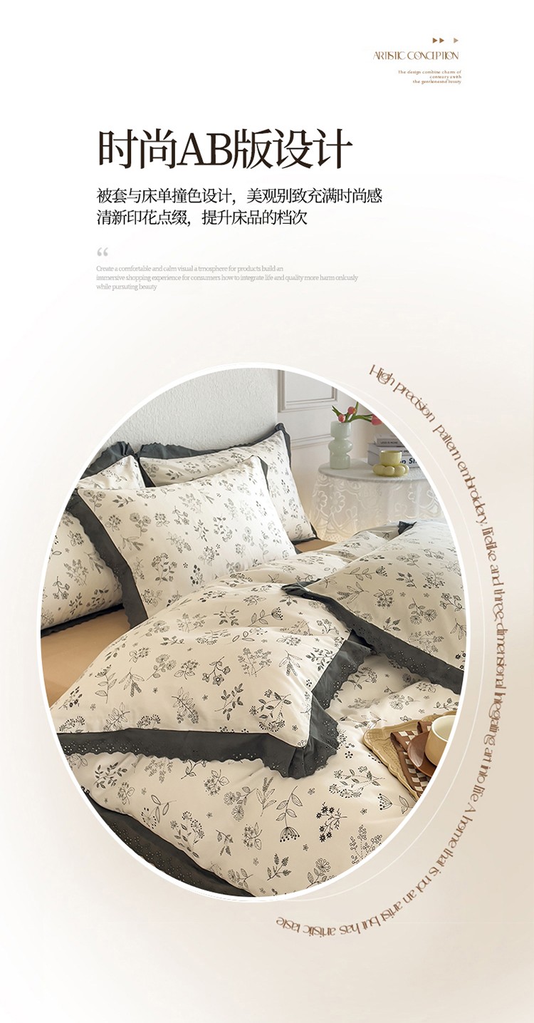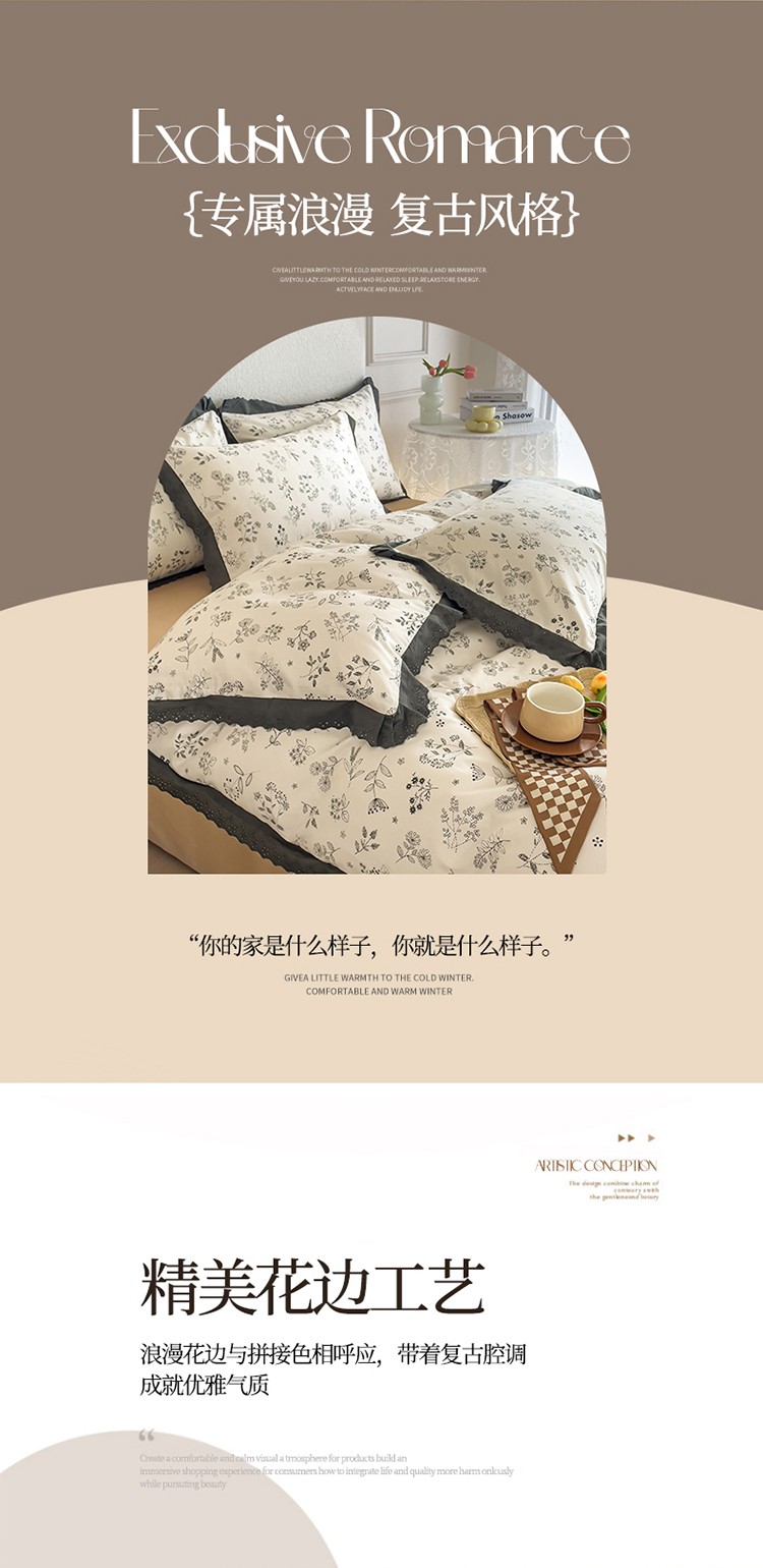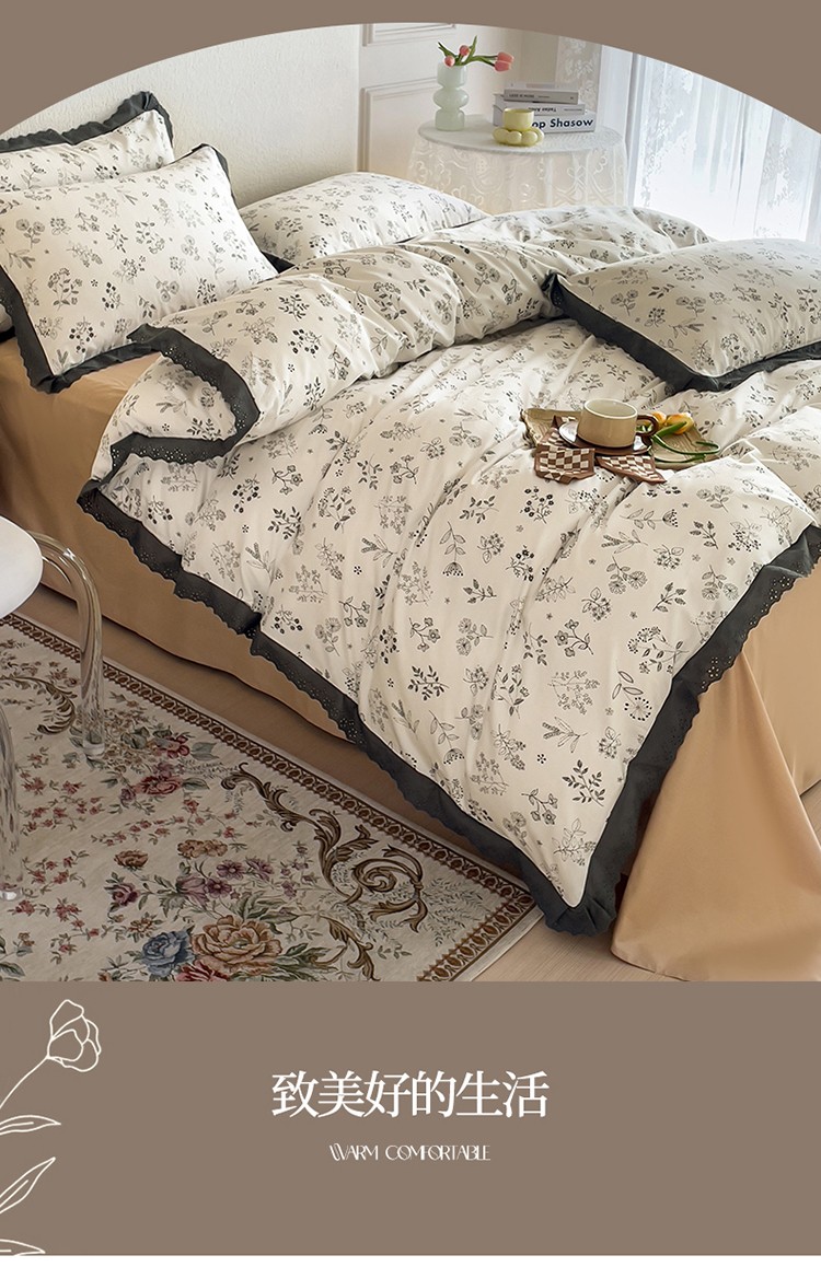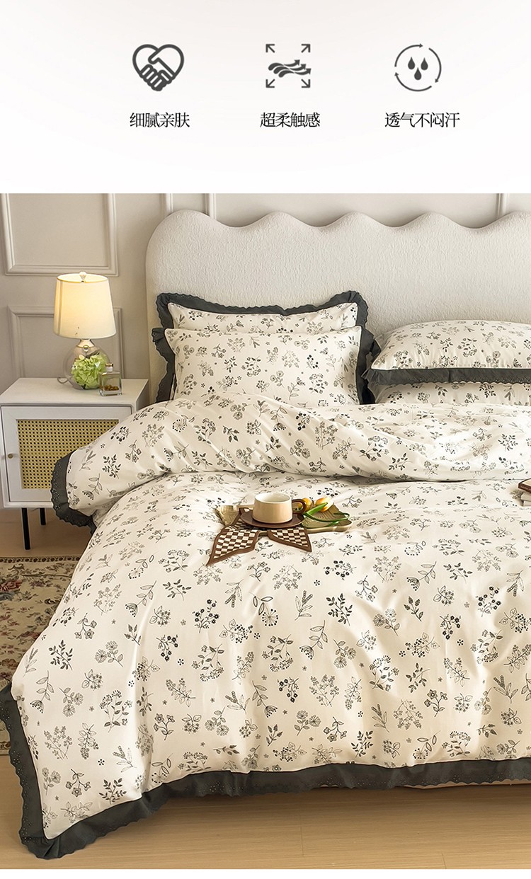 KA家纺 2023春夏新款复古全棉花边四件套 繁絮