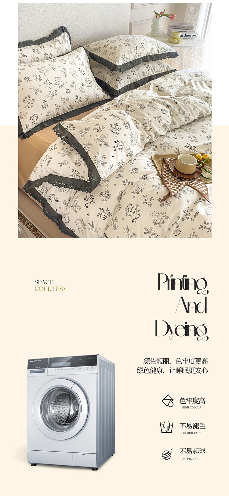 3、通州区市场监督局友情提醒,近期涉及到床上用品不褪色不掉毛不缩水的投诉和以世界知名品牌图案为面料的床品举报较多。请各商家自检自查,对照整改或进行下架处理。