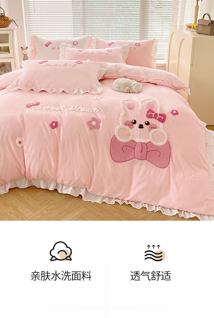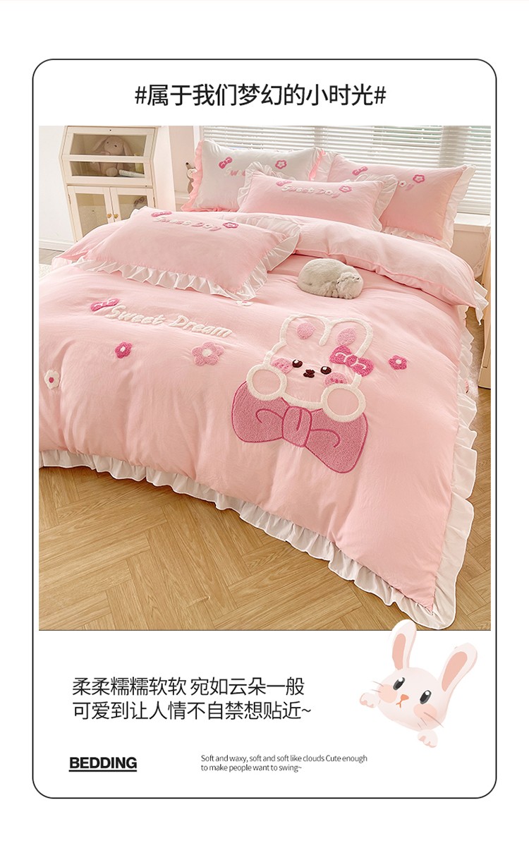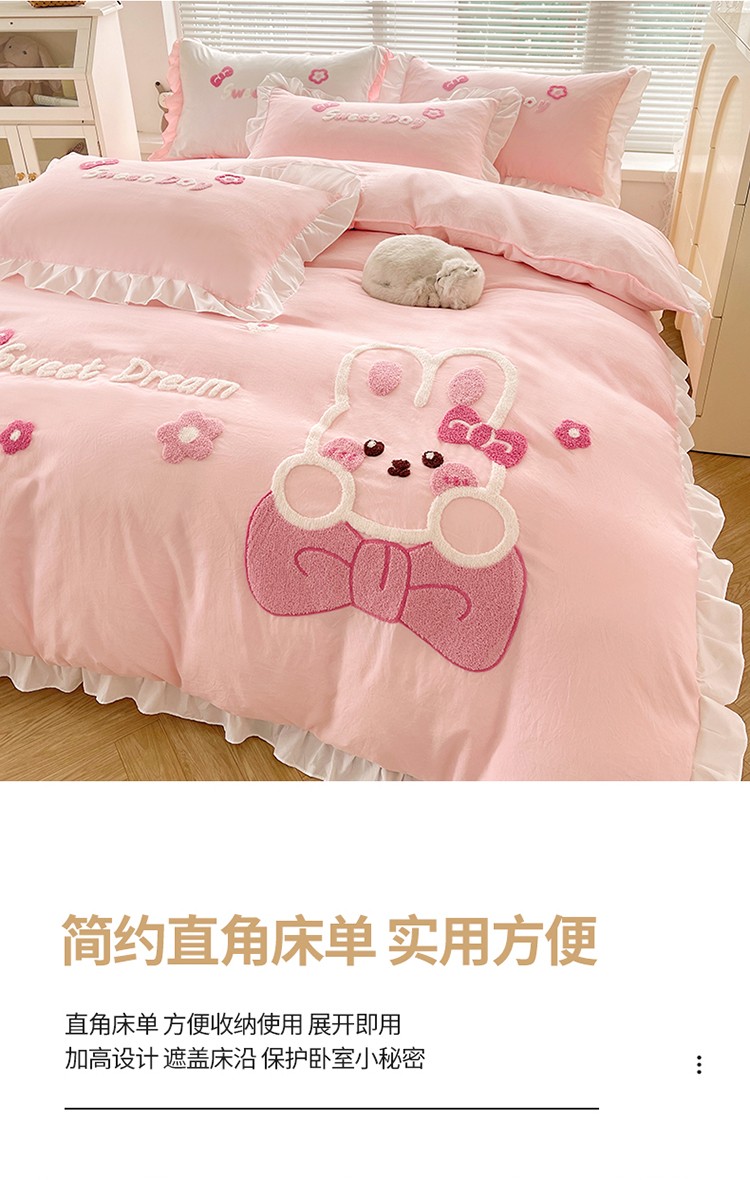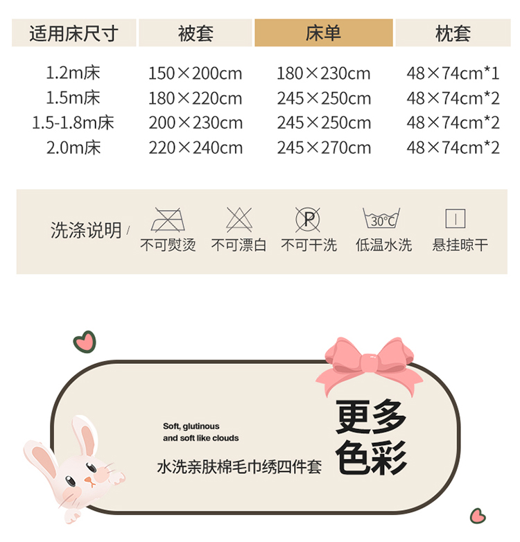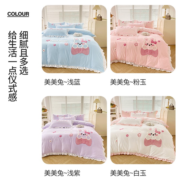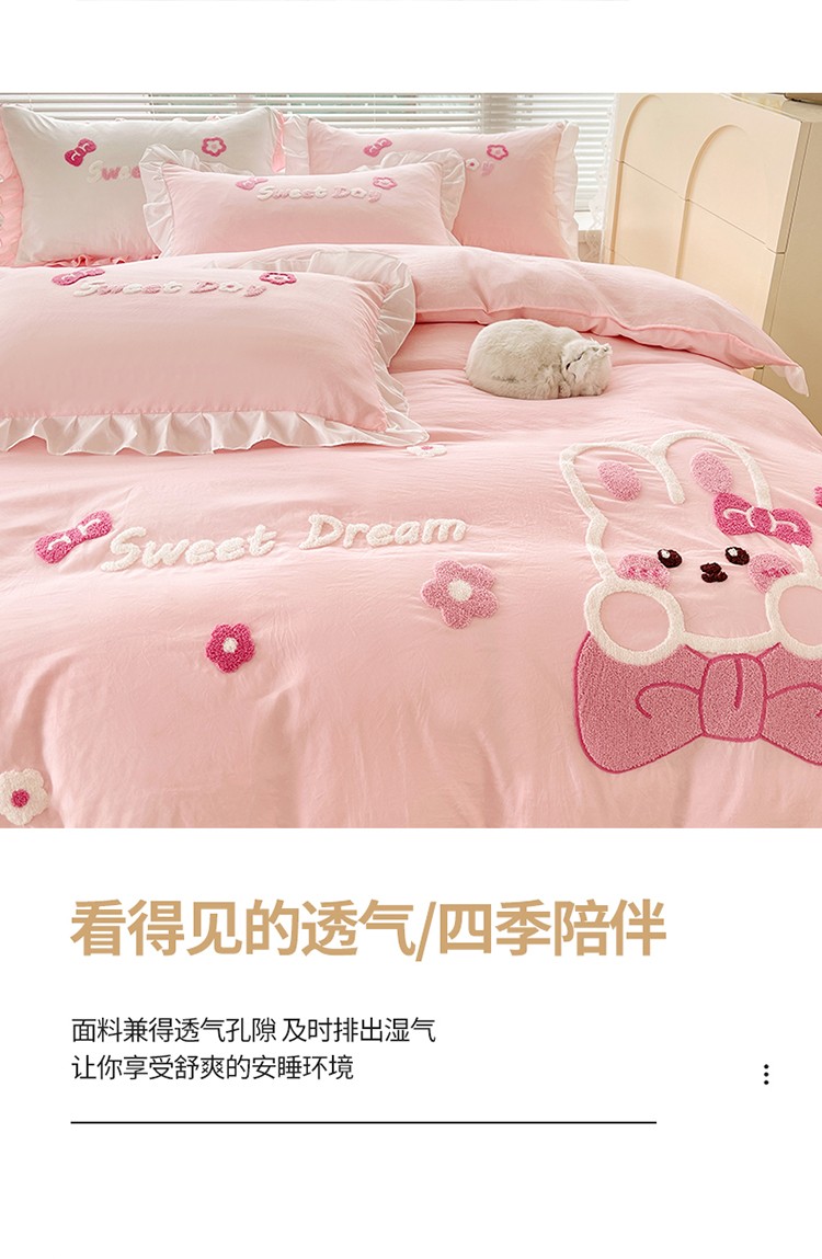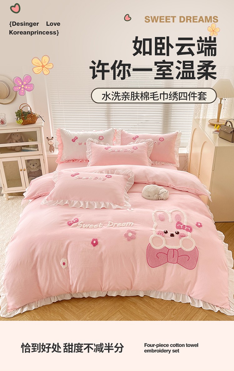 当前位置: 91家纺网 > 商品网购 > 床品套件 > 四件套 > 毛巾绣四件套 > (总)泉欣家纺 2024新款美美兔毛巾绣四件套(专版花型)