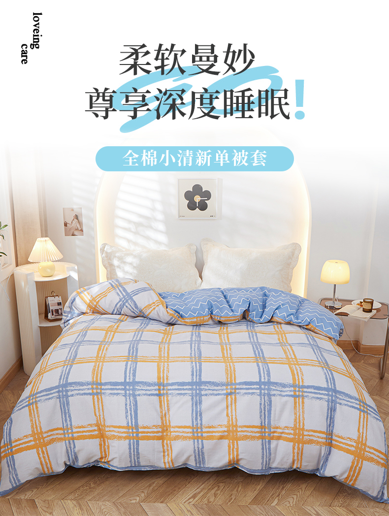 商品名称:钰伶 新款13372斜纹全棉印花纯棉单被套(预留6厘米缩水尺寸)