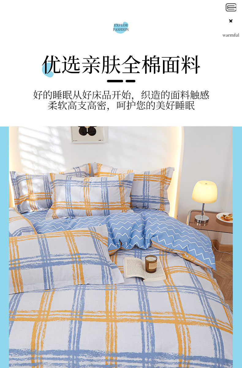 钰伶 新款全棉简约12868印花纯棉四件套(预留6厘米缩水尺寸) 斯坦利,斯坦利