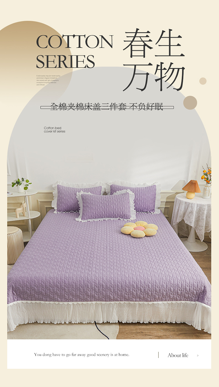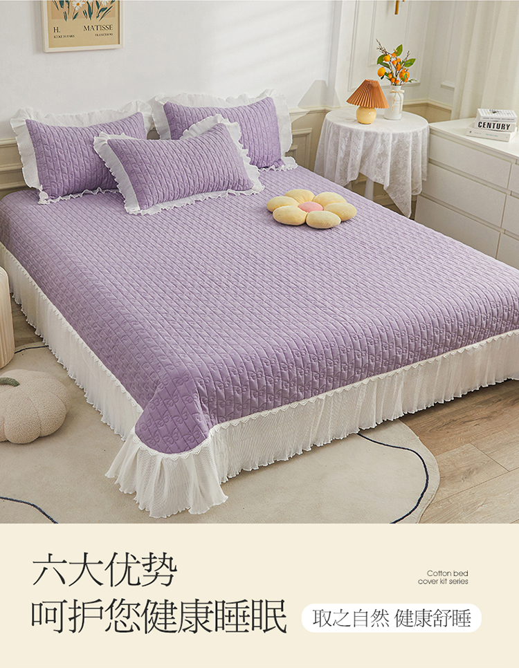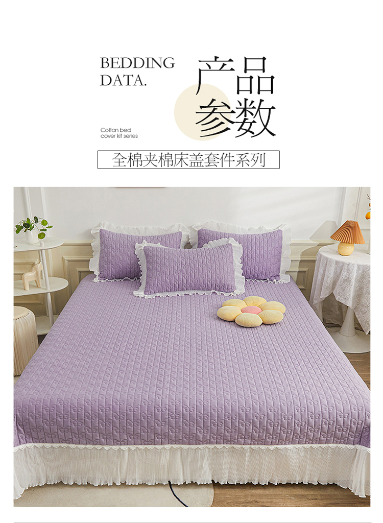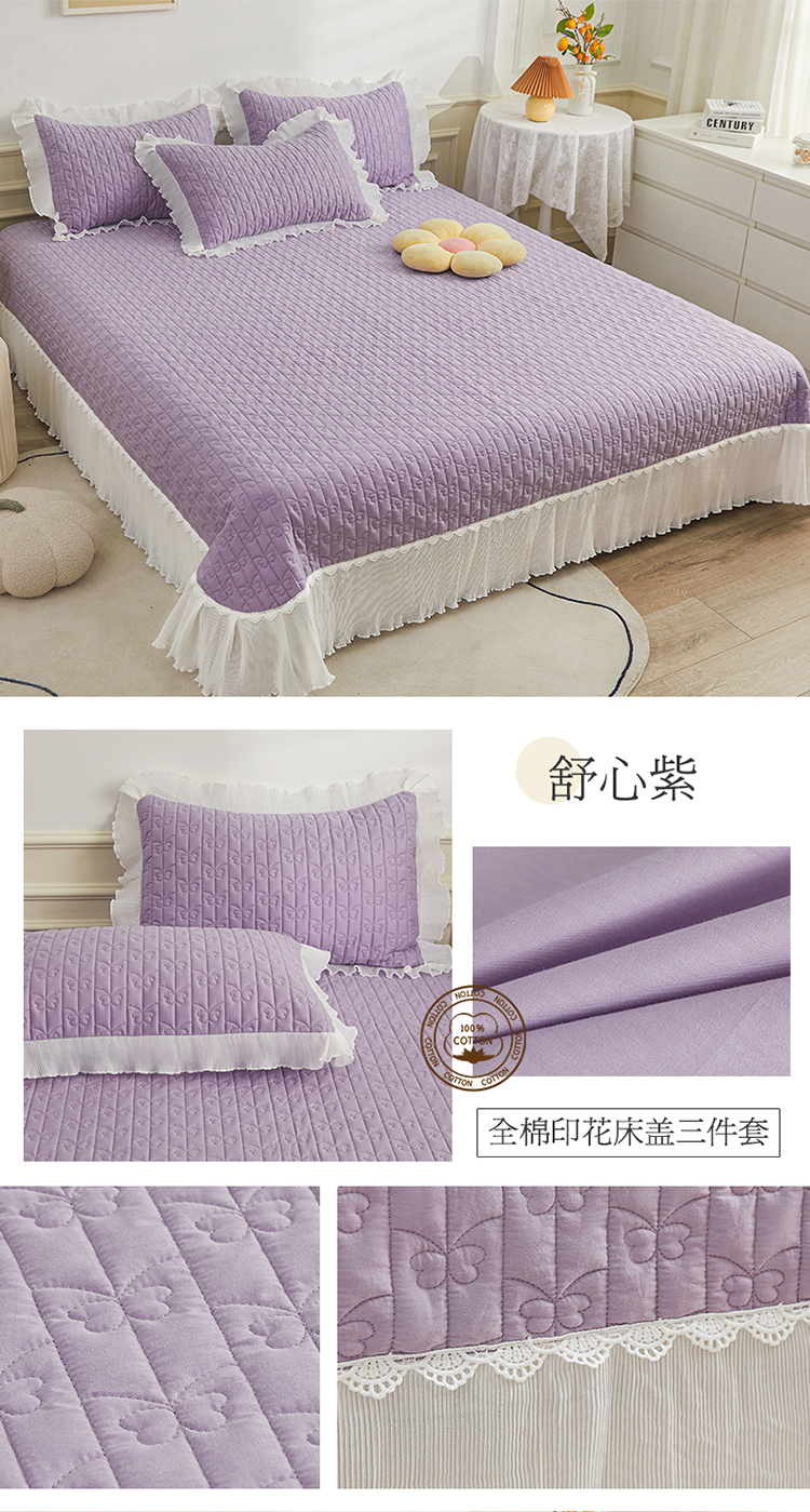 当前位置: 91家纺网 > 商品网购 > 床品套件 > 四件套 > 全棉普通四件套 > 宜凡家纺 2023新款全棉花边床盖三四件套 舒心紫